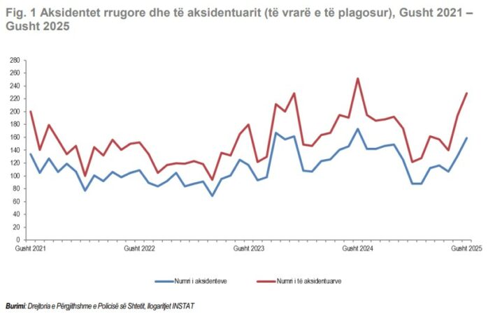 “Në muajin Gusht 2025 numërohen 159 aksidente rrugore, nga të cilët 229 persona