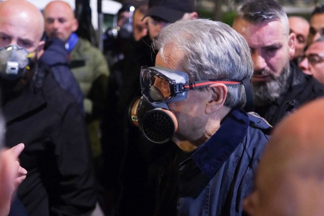 Po ashtu, kreu i PD u lag edhe nga uji i hedhur nga autobotët e policisë, të përdorura për shpërndarjen e turmës.