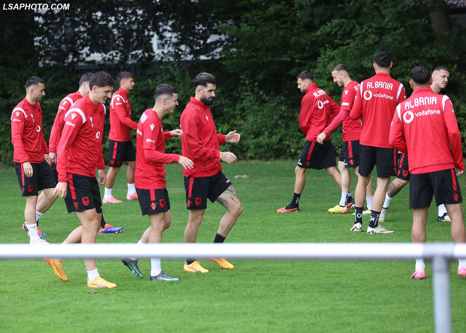 Departamenti i Komunikimit në FSHF bën me dije se skuadra ka zhvilluar një seancë me ngarkesë të plotë dhe ku morën pjesë të gjithë futbollistët pa përjashtim. Pas palestrës dhe ushtrimeve fizike, trajneri Silvinjo ka punuar për pjesën taktike të sfidës me kroatët.