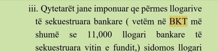 weblajm.com ka siguruar dosjen ku thuhet se në BKT 11 mijë llogari kryesisht të pagave të qytetarëve janë sekuestruar.