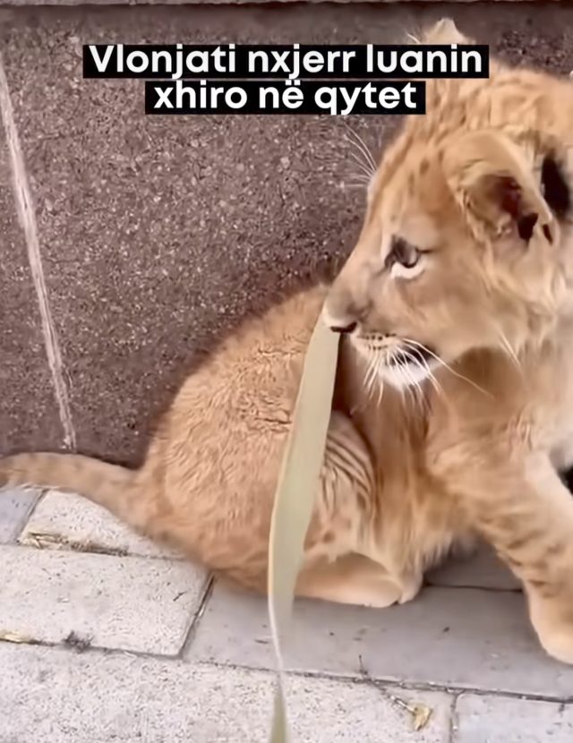 Pamjet, që janë bërë virale në pak orë, tregojnë një person duke ecur i qetë në mes të qytetit, ndërsa pranë tij ndodhet një luan i mbajtur me litar në qafë. Skena ka habitur qytetarët, të cilët e kanë filmuar momentin dhe e kanë shpërndarë masivisht në rrjet.