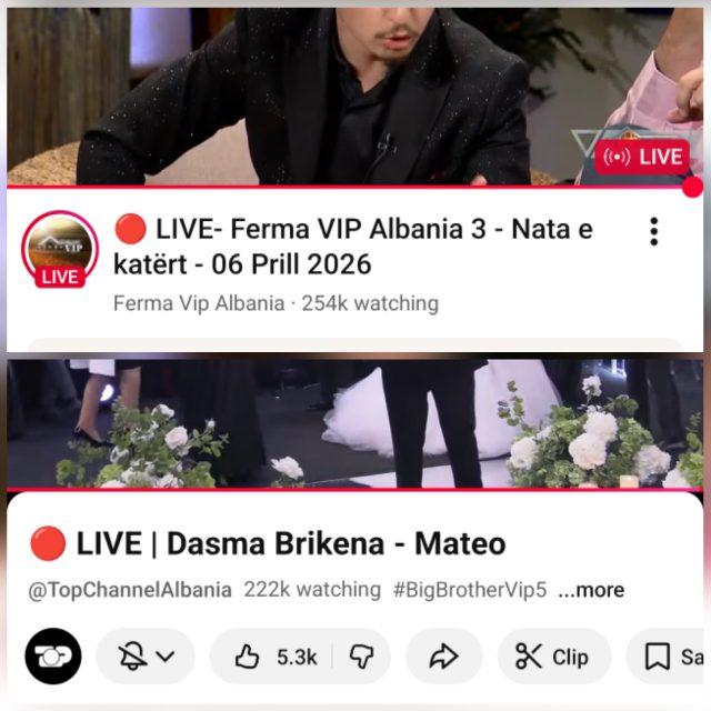 Siç shihet edhe nga pamjet e publikuara live në YouTube, “Ferma VIP Albania 3” ka arritur rreth 254 mijë shikues në kohë reale, ndërsa transmetimi i dasmës së Brikenës dhe Mateos në BBVIP ka regjistruar rreth 222 mijë shikues.