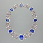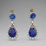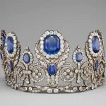 - Një diademë, varëse dhe një nga palët e vathëve nga seti me safir që i përkiste mbretëreshës Marie-Amelie dhe mbretëreshës Hortense