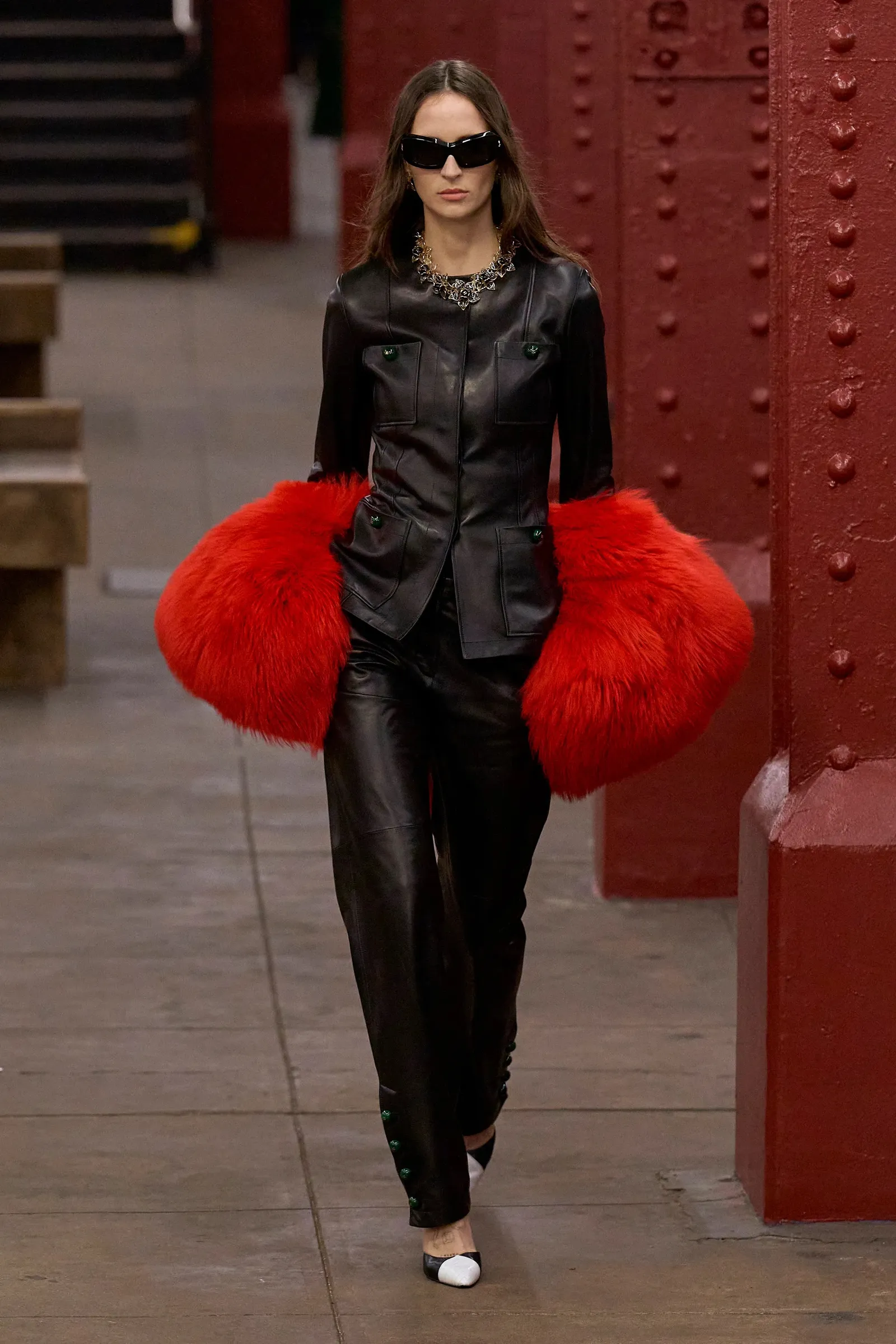 Xhaketa lëkure + syze me xhama shumë të errët. Stili “indie sleaze” është kudo. (lindi mes viteve 2006–2012, e rikthyer fuqishëm në pasarelat dhe rrjetet sociale pas vitit 2025)