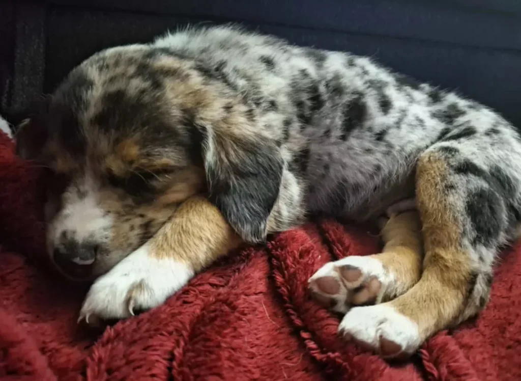 Bazuar në pamjen e jashtme, shpëtimtari dhe shumë përdorues online menduan se këlyshi kishte gjak të racës Catahoula Leopard Dog. Për disa javë kjo hipotezë u duk e sigurt, deri sa, rreth javës së dhjetë të jetës, u vendos të kryhej një test ADN-je për qentë. Rezultati befasoi të gjithë. Asnjë gjurmë e racës së dyshuar. Sipas testit gjenetik, këlyshi ishte rezultat i një kryqëzimi mes një Pastore Australian mini dhe një Beagle. Një kombinim i pazakontë, por që shpjegon pamjen e tij unike: shprehje e ëmbël, trup kompakt dhe një kureshtje e pandalshme.