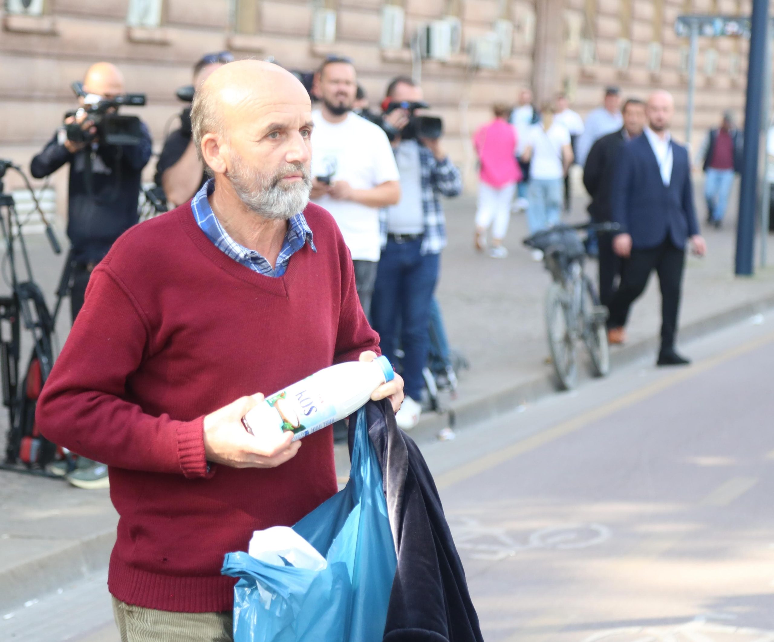 Pamjet e incidentit, të siguruara para godinës së Kuvendit, tregojnë qytetarin që i afrohet Belerit me një qese në njërën dorë dhe një shishe kosi në tjetrën.