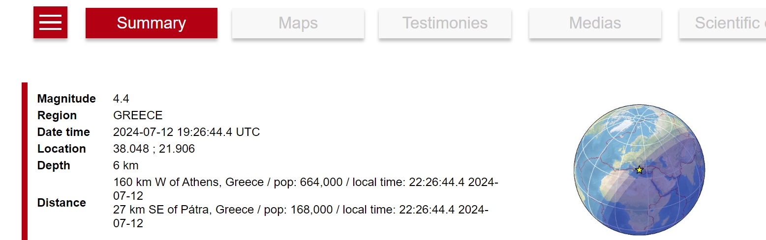Një lëkundje toke me magnitudë 4.4 të shkallës Rihter tronditi Greqinë mbrëmjen e së premtes. Epiqendra u lokalizua nga EMSC në thellësinë 6 km nëntokë, 160 km në perëndim të Athinës dhe 27 km në juglindje të Patrës.