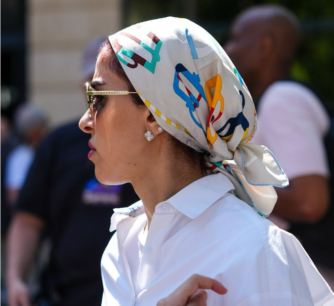 Këtë verë, kapelet dhe kasketat po lihen mënjanë. Në vend të tyre, trendi dominues janë foulard-i (shamia elegante) dhe bandana (shamia e lidhur në kokë me stil më të lirë e urban). Ato përdoren jo vetëm për t’u mbrojtur nga dielli, por edhe si pjesë kyçe e stilit të përditshëm. Mjafton një copë e bardhë e thjeshtë, një model me motive vintage apo një shami e punuar me grep (crochet), dhe je gati për të shkëlqyer, si në plazh ashtu edhe në qytet.