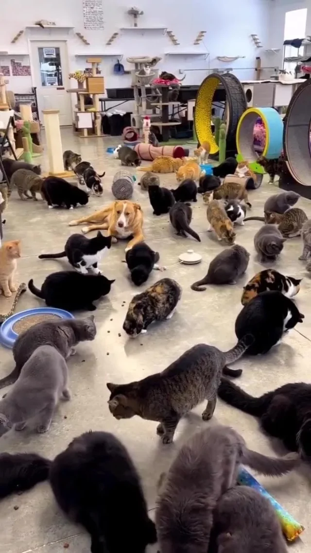 Në një strehë kafshësh në Minnesota, ku jetojnë mbi 350 mace të shpëtuara nga rruga, vizitorët përballen me një surprizë të pazakontë. Mes dhjetëra bishtave dhe syve kureshtarë të maceve, shfaqet edhe një qen. Quhet Bella dhe ka vetëm një dëshirë: të jetë gjithmonë me macet.