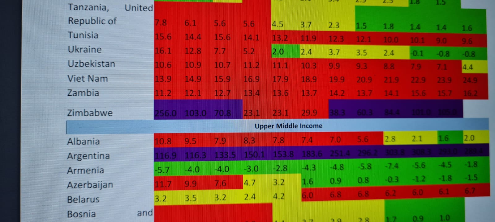 Inflacion më i lartë se 5% përjetohet në 59.1% të vendeve me të ardhura të ulëta (pa ndryshim që nga përditësimi i fundit më 30 maj 2024), 63% e vendeve me të ardhura mesatare të ulëta (pa ndryshim), 36% e vendeve me të ardhura të mesme të larta vendet me të ardhura (5.0 pikë përqindje më e lartë) dhe 10.9 për qind e vendeve me të ardhura të larta (3.6 pikë përqindje më e ulët). Në terma realë, inflacioni i çmimeve të ushqimeve tejkaloi inflacionin e përgjithshëm në 46.7% të 167 vendeve ku disponohen të dhëna.
