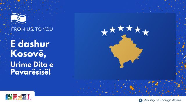 Përmes një postimi në platformën X, diplomacia izraelite përcolli një mesazh të shkurtër: “E dashur Kosovë, urime Dita e Pavarësisë”.