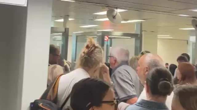 Një prej pasagjereve, 17-vjeçarja Kiera, tregoi se kishte mbërritur në aeroport herët në mëngjes, por kur arriti në kontrollin kufitar u përball me një radhë të gjatë dhe më pas u njoftua se fluturimi ishte nisur pa shumicën e udhëtarëve. Sipas saj, vetëm rreth 30 persona arritën të hipnin në avion.