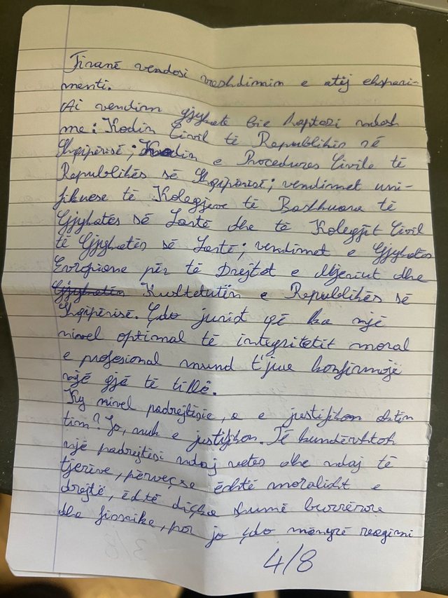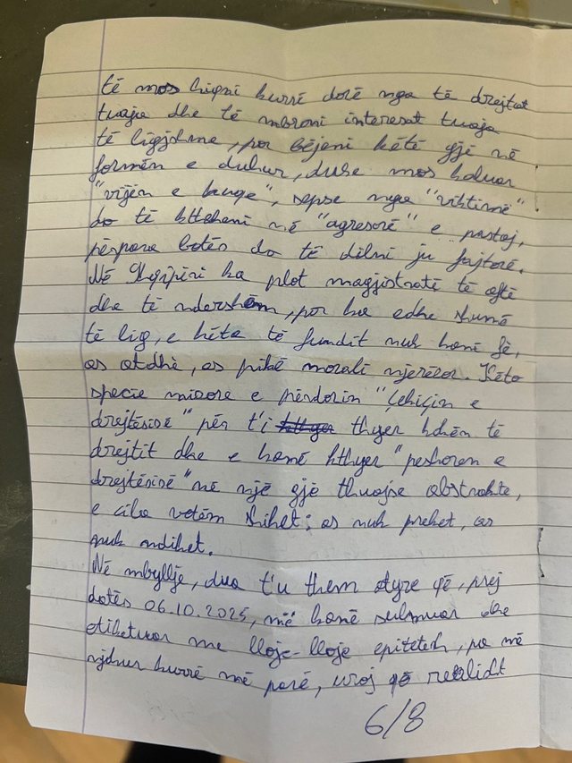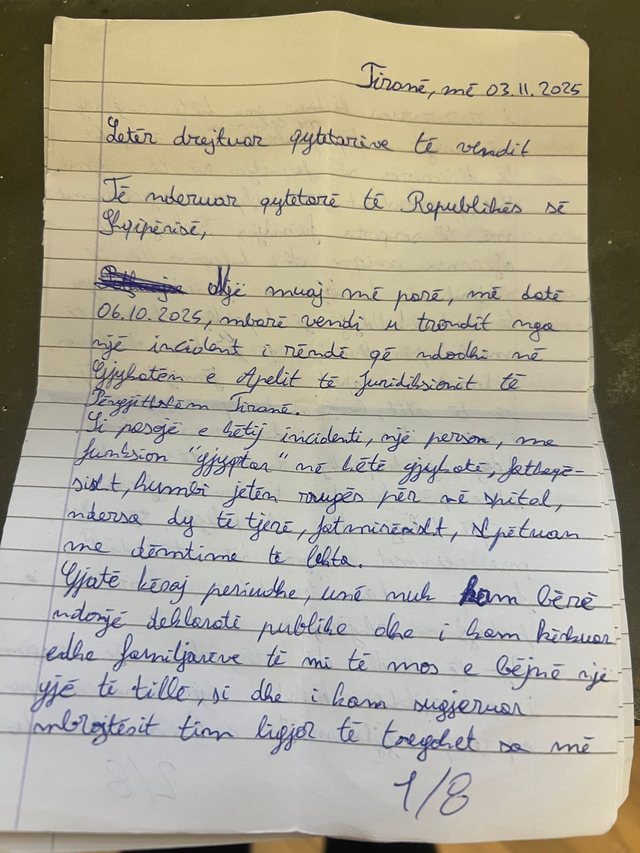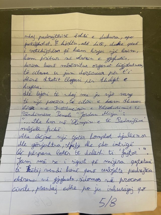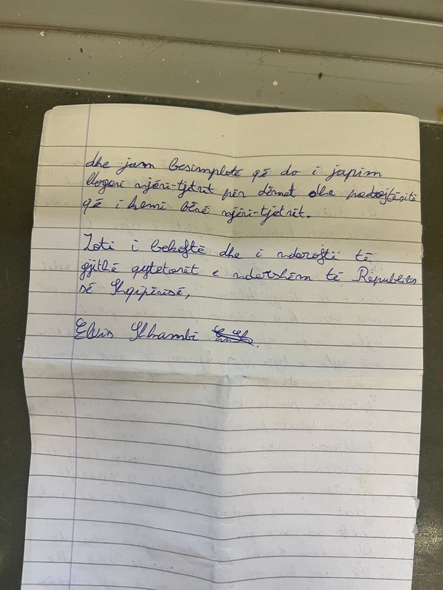 Autori i vrasjes së gjyqtarit Astrit Kalaja, Elvis Shkambi, i cili ndodhet në burg që prej datës 6 tetor, ka shkruar një letër nga burgu, ku po vuan dënimin për krimin e rëndë.
