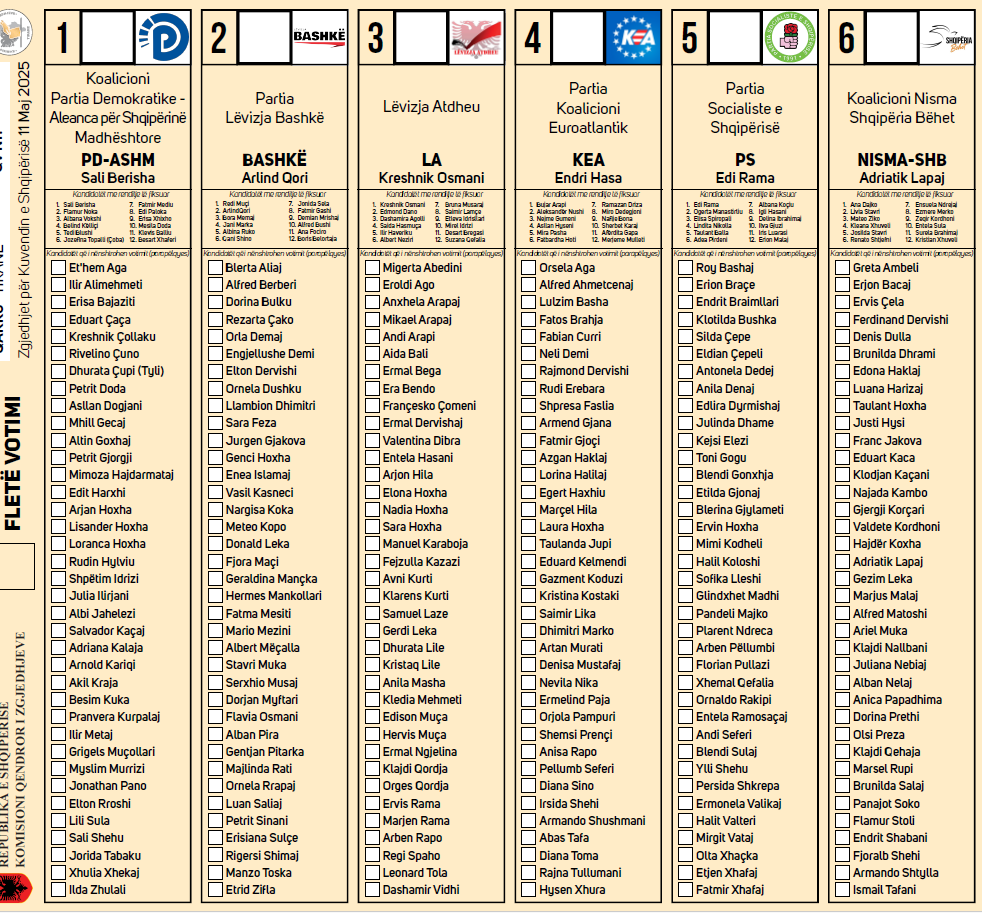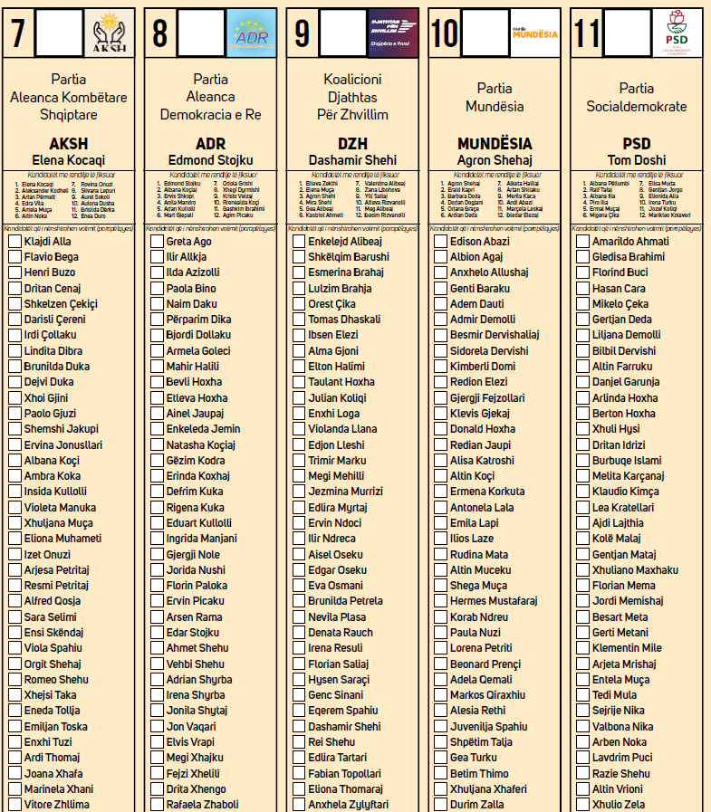 Në të janë renditur subjektet sipas radhës së shortit të hedhur, por sqarohet se nëse ju votoni për një parti dhe një kandidat të një tjetre, atëherë vota quhet e pavlefshme.