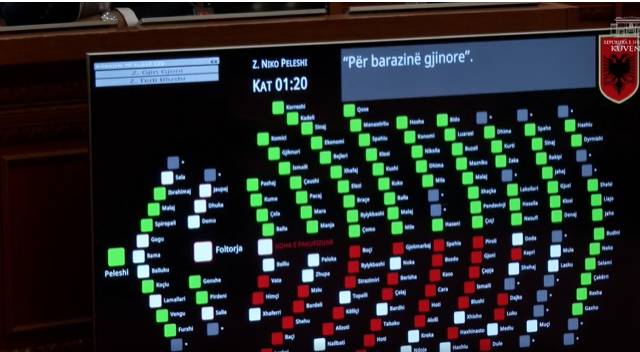 Seanca plenare e 6 nëntorit 2025 u zhvillua në një atmosferë të tensionuar politike, por me një vendimmarrje që u cilësua si historike nga mazhoranca. Pas më shumë se 12 orësh diskutimesh, Kuvendi i Shqipërisë miratoi ligjin “Për Barazinë Gjinore” me 77 vota pro, ndërsa 36 deputetë të opozitës votuan kundër.