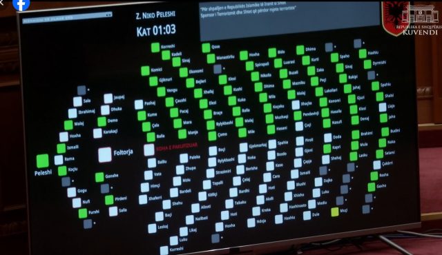 Kuvendi i Shqipërisë miratoi rezolutën për shpalljen e Iranit shtet sponsor i terrorizmit, në një seancë të shoqëruar me mungesën e opozitës në sallë me 79 vota pro, 1 abstenim dhe asnje kundër