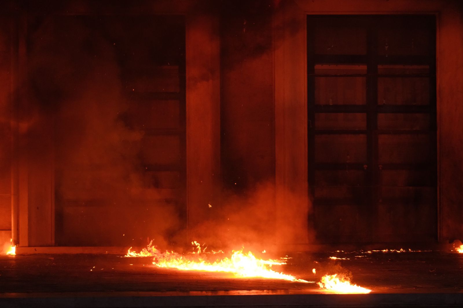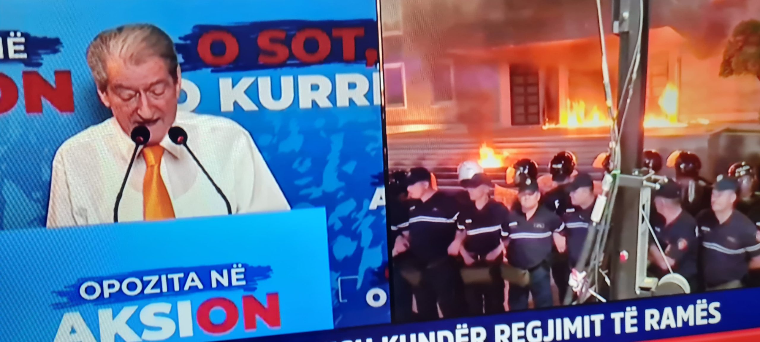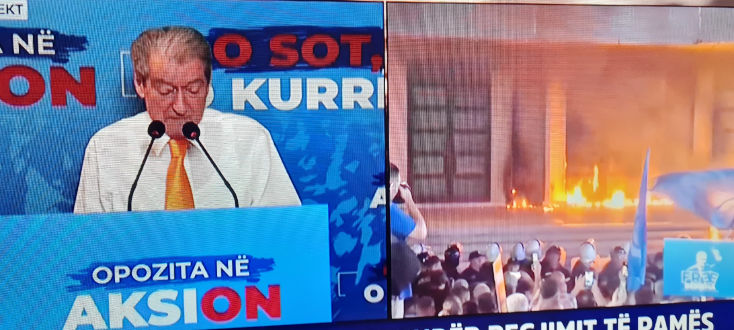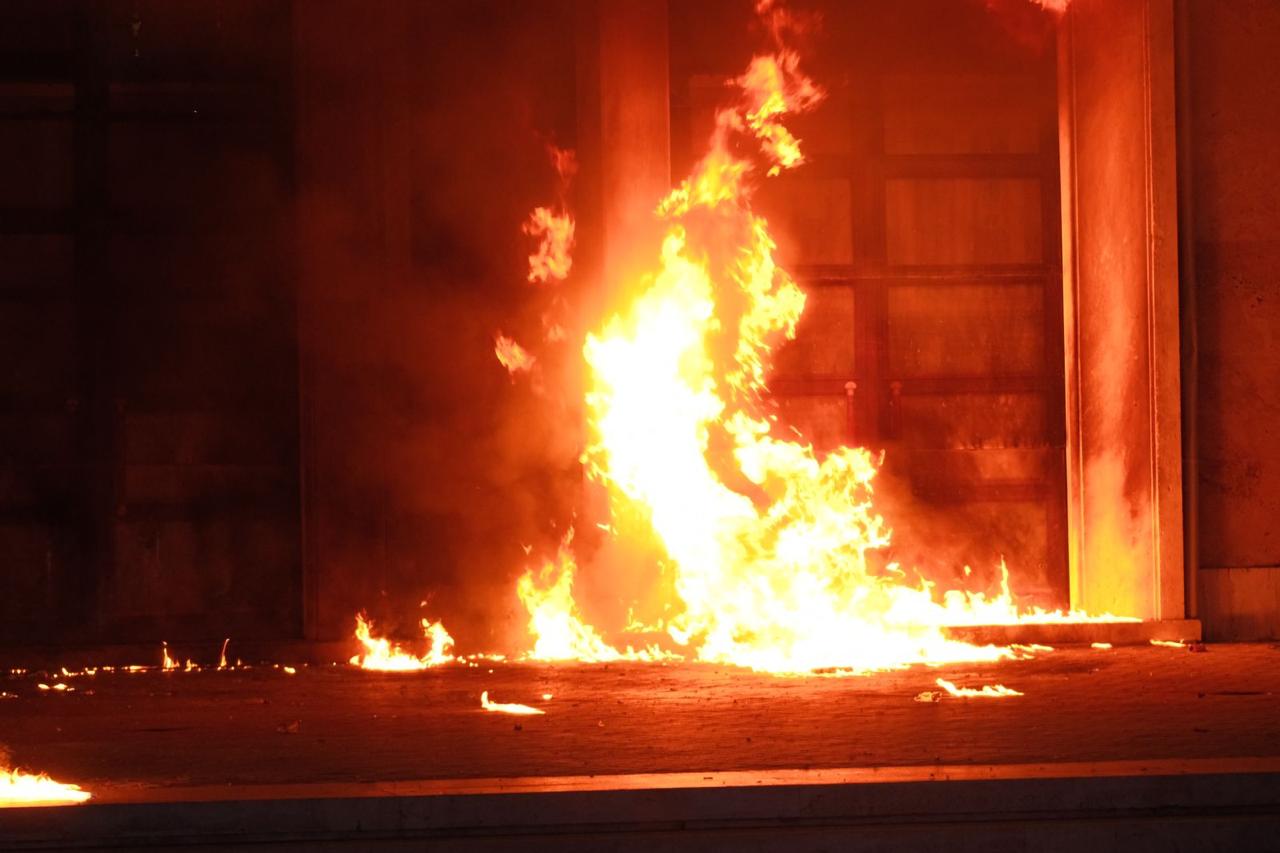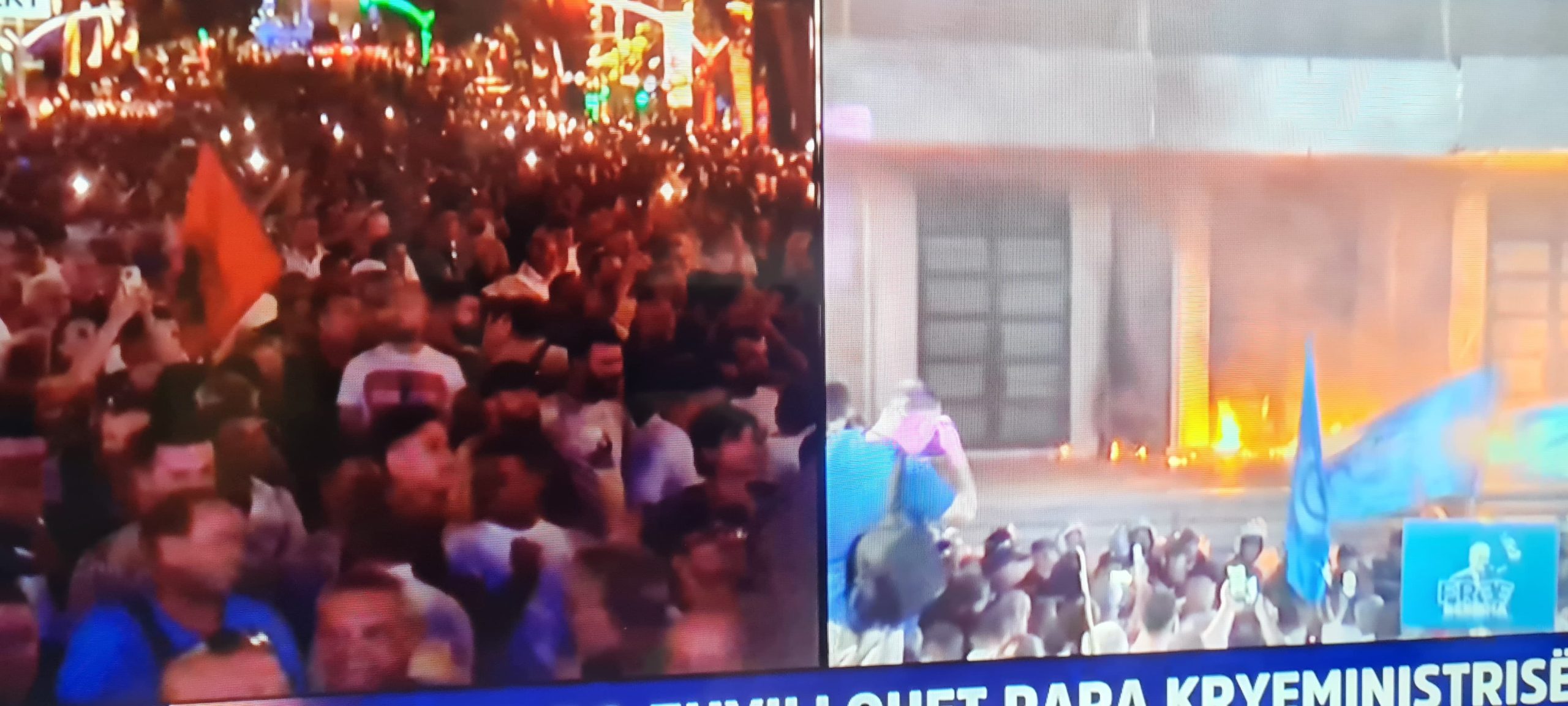 Gjate fjales se ish kryeministrit Berisha drejtuar protestuesve u hodh molotov te shkallet e kryeministrise.