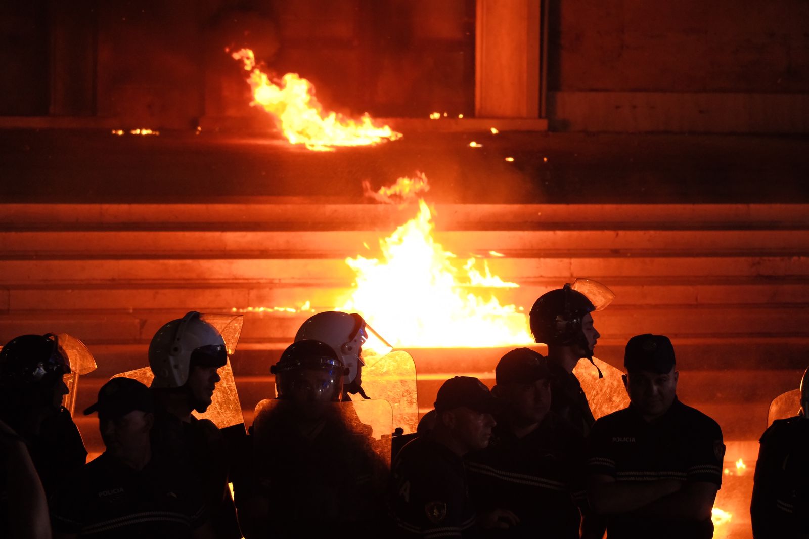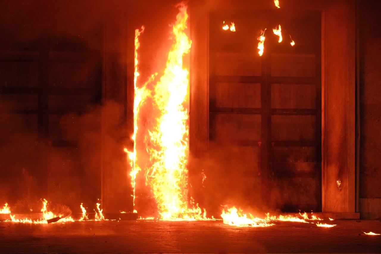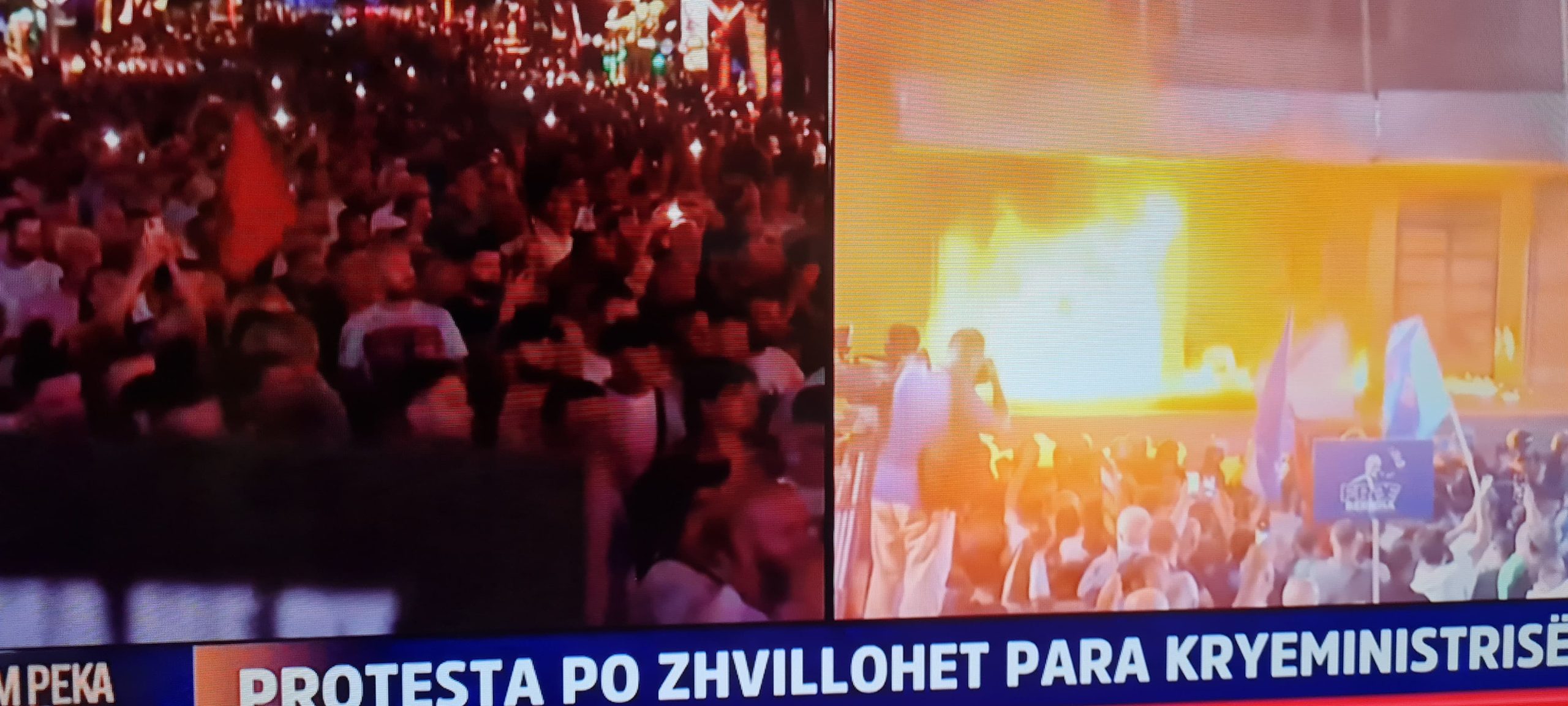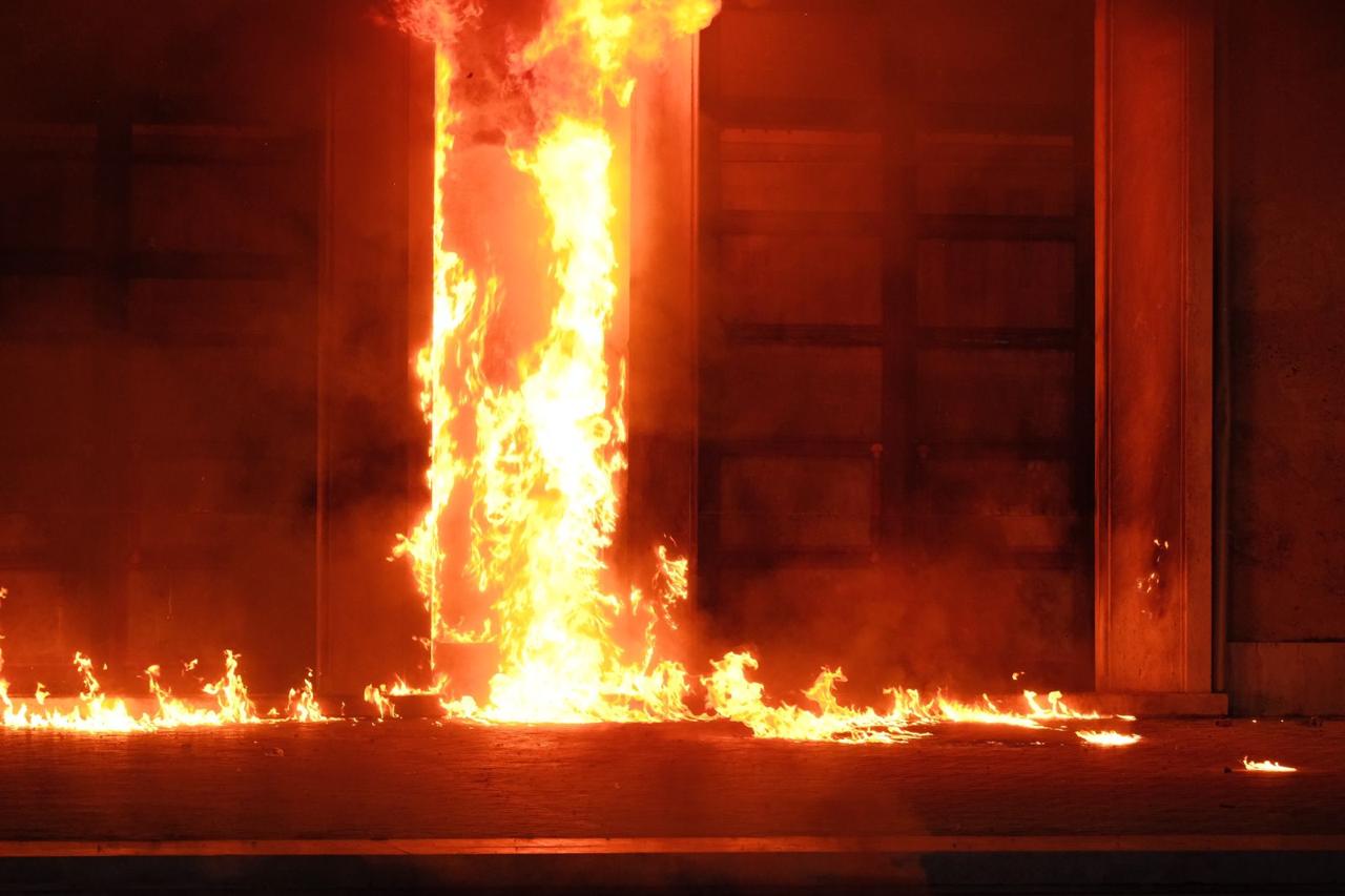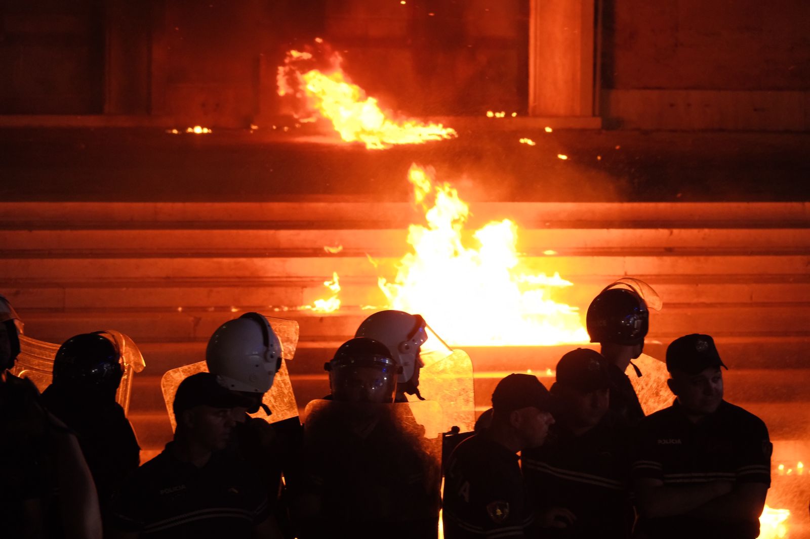 Gjate fjales se ish kryeministrit Berisha drejtuar protestuesve u hodh molotov te shkallet e kryeministrise.