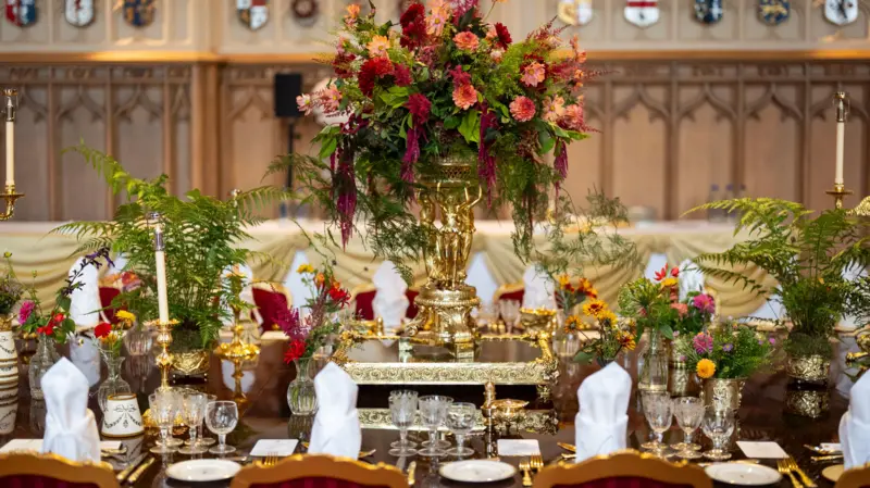 Dekorimi i sallës u bë me lule dhe barishte të freskëta, të mbledhura nga kopshtet e Buckingham Palace dhe Windsor Castle. Pas mbrëmjes, lulet që nuk mund të ripërdoren do t’i dhurohen një organizate bamirësie për t’u shpërndarë në shtëpi kujdesi dhe strehimore.