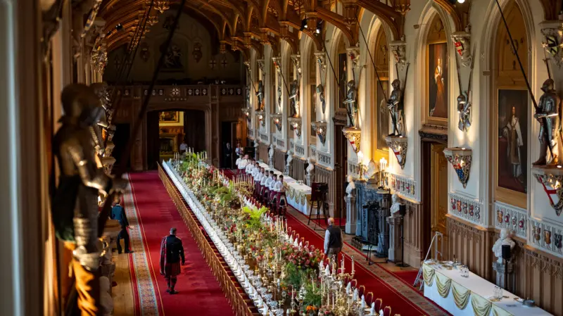 Banketi u zhvillua në një tryezë të gjatë 47.3 metra, e rrethuar nga 160 të ftuar dhe e dekoruar me 139 qirinj, 1452 copë argjendari dhe 100 anëtarë stafi në shërbim.