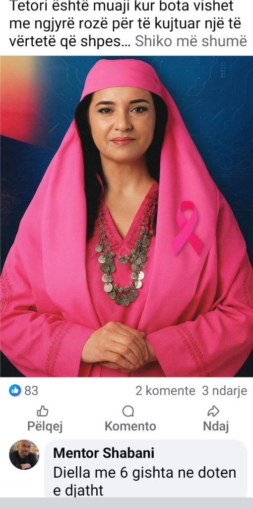 Kush tha që inteligjenca artificiale nuk sjell surpriza? Ministrja e parë virtuale në botë, Diella jonë digjitale, doli sot në rrjete sociale me një foto të re, e zhveshur nga kostimi i zadrimores dhe tani e gjitha në rozë për nder të “Tetorit Rozë”, muajit të ndërgjegjësimit kundër kancerit të gjirit.