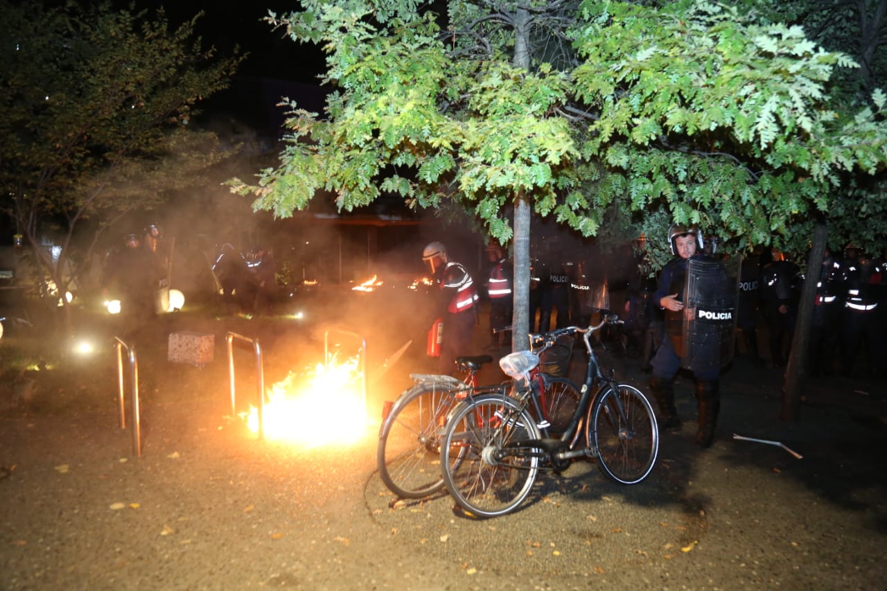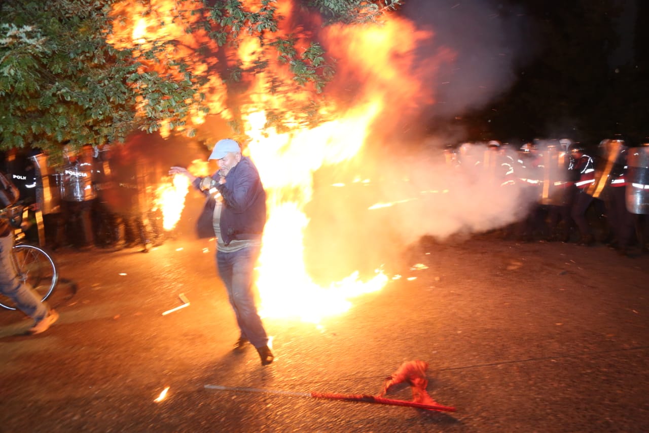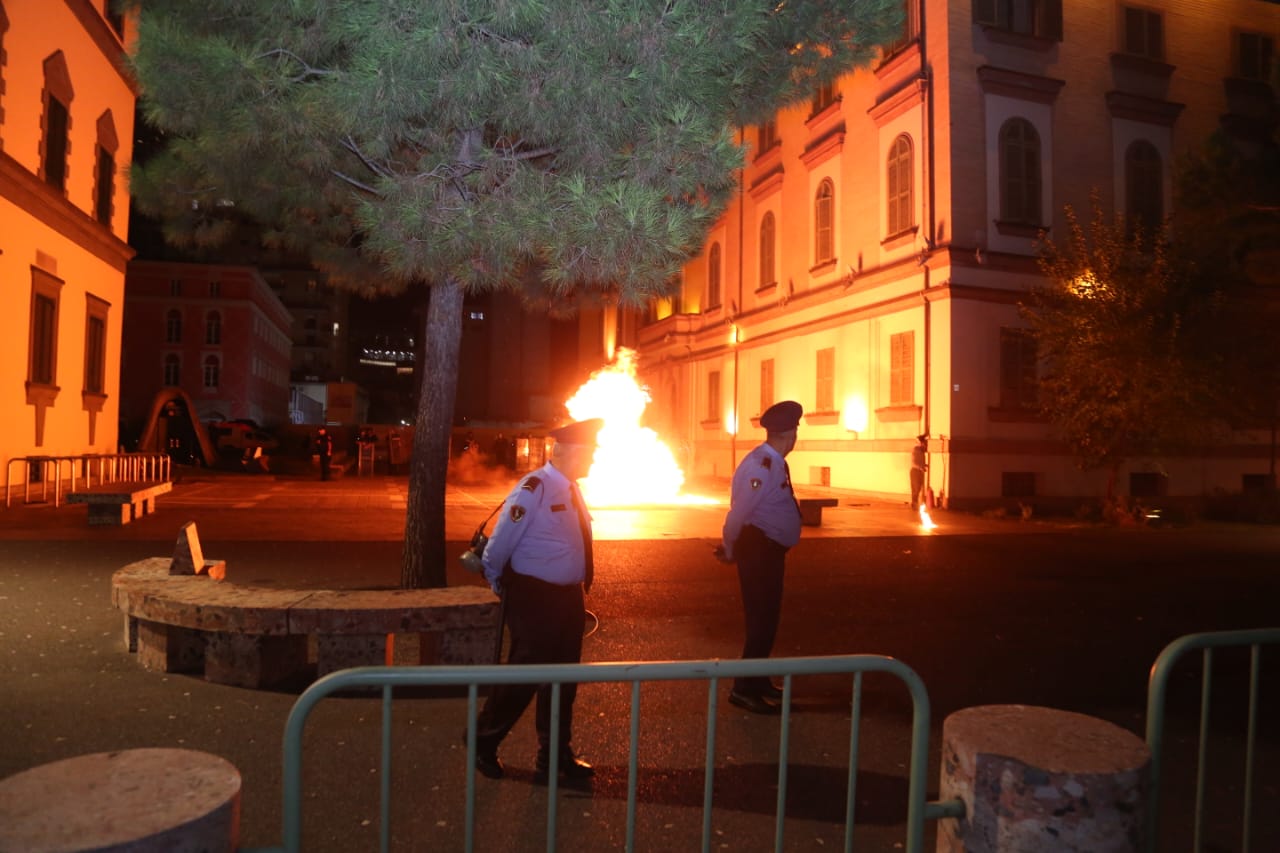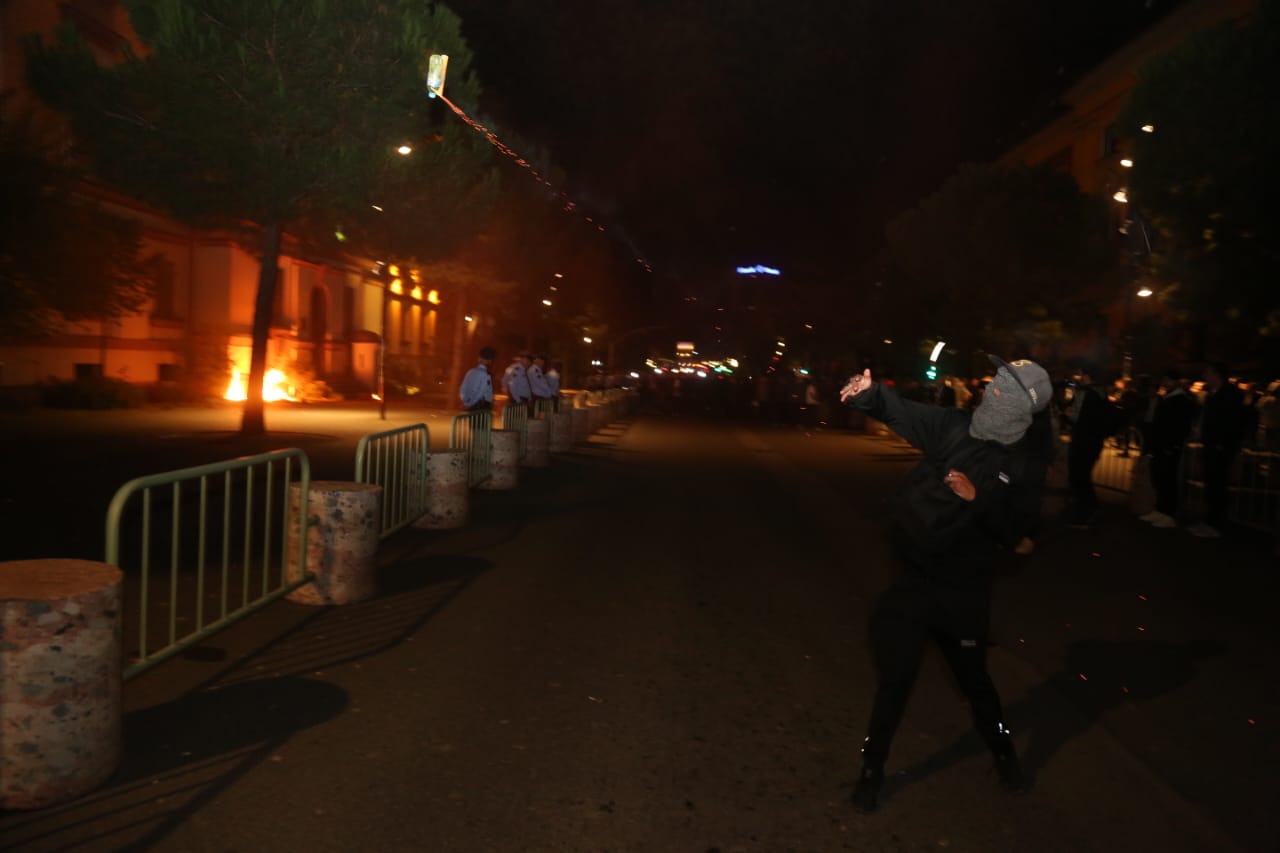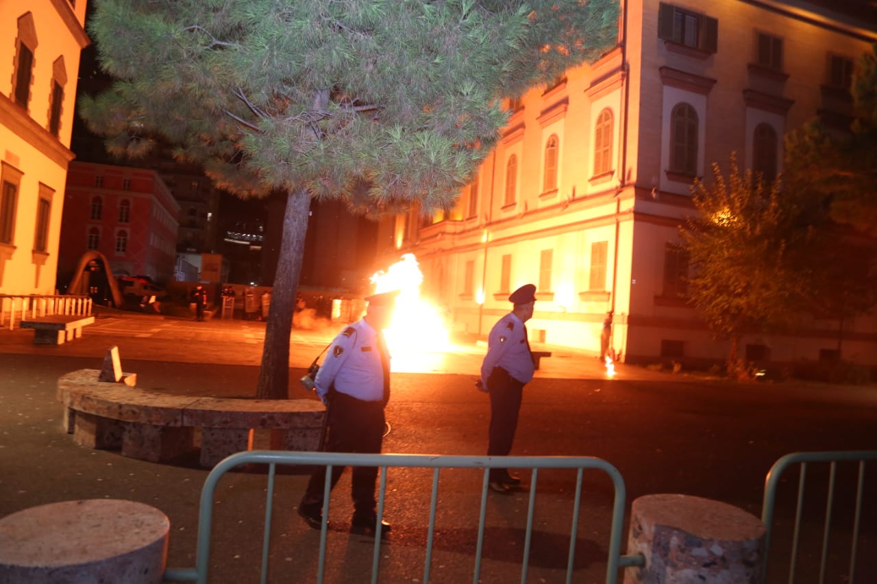Një protestues dhe një efektiv policie morën lëndime të lehta nga molotovi i hedhur para Bashkisë Tiranë/balkanweb