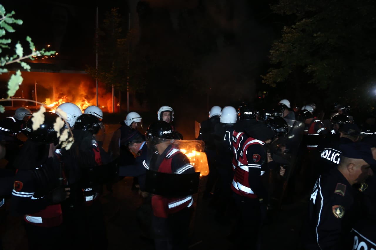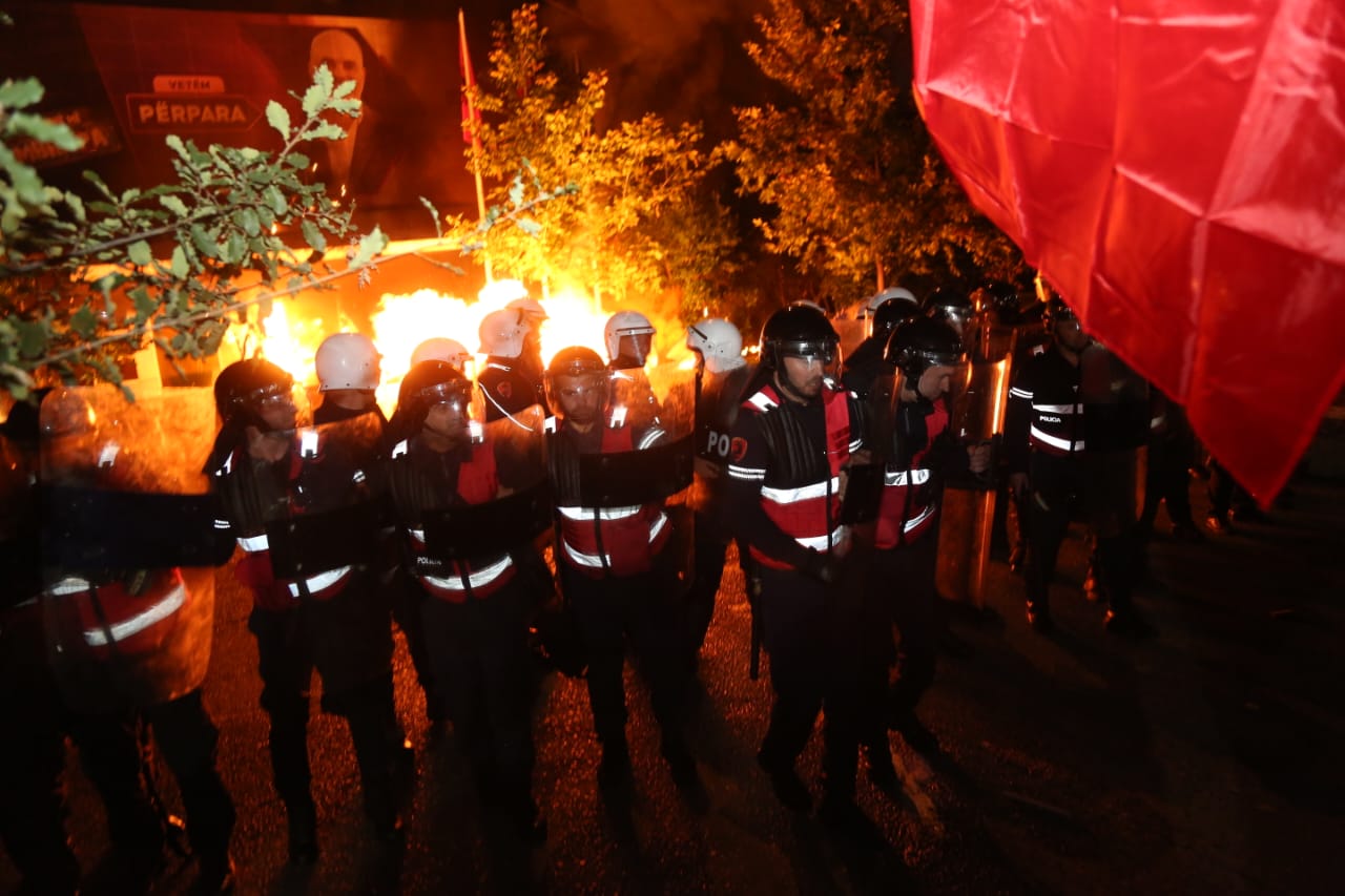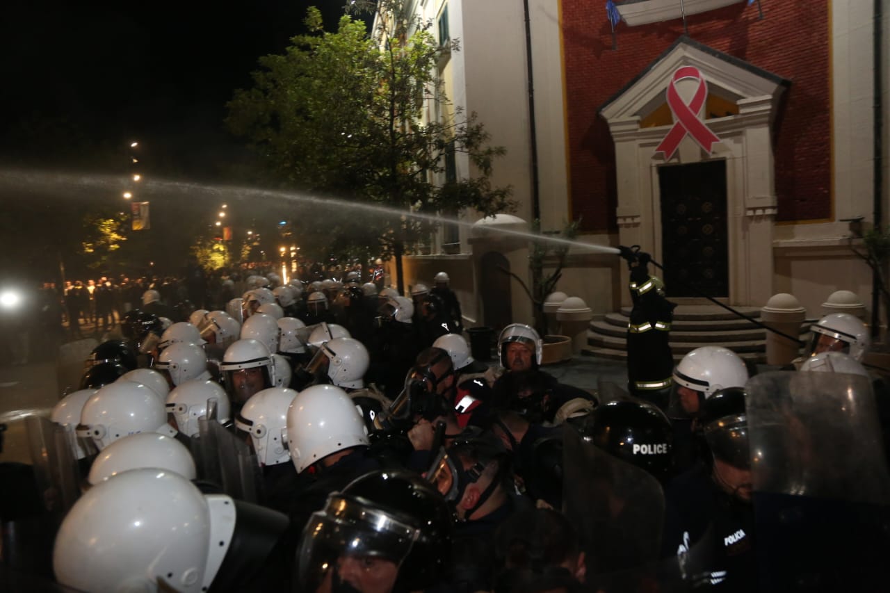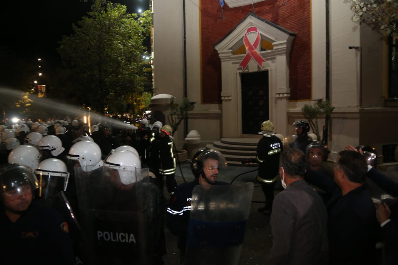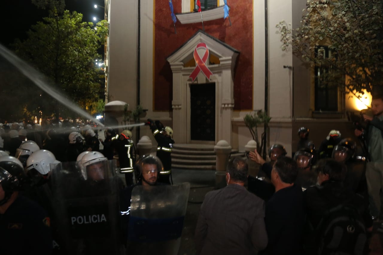 Një protestues dhe një efektiv policie morën lëndime të lehta nga molotovi i hedhur para Bashkisë Tiranë/balkanweb