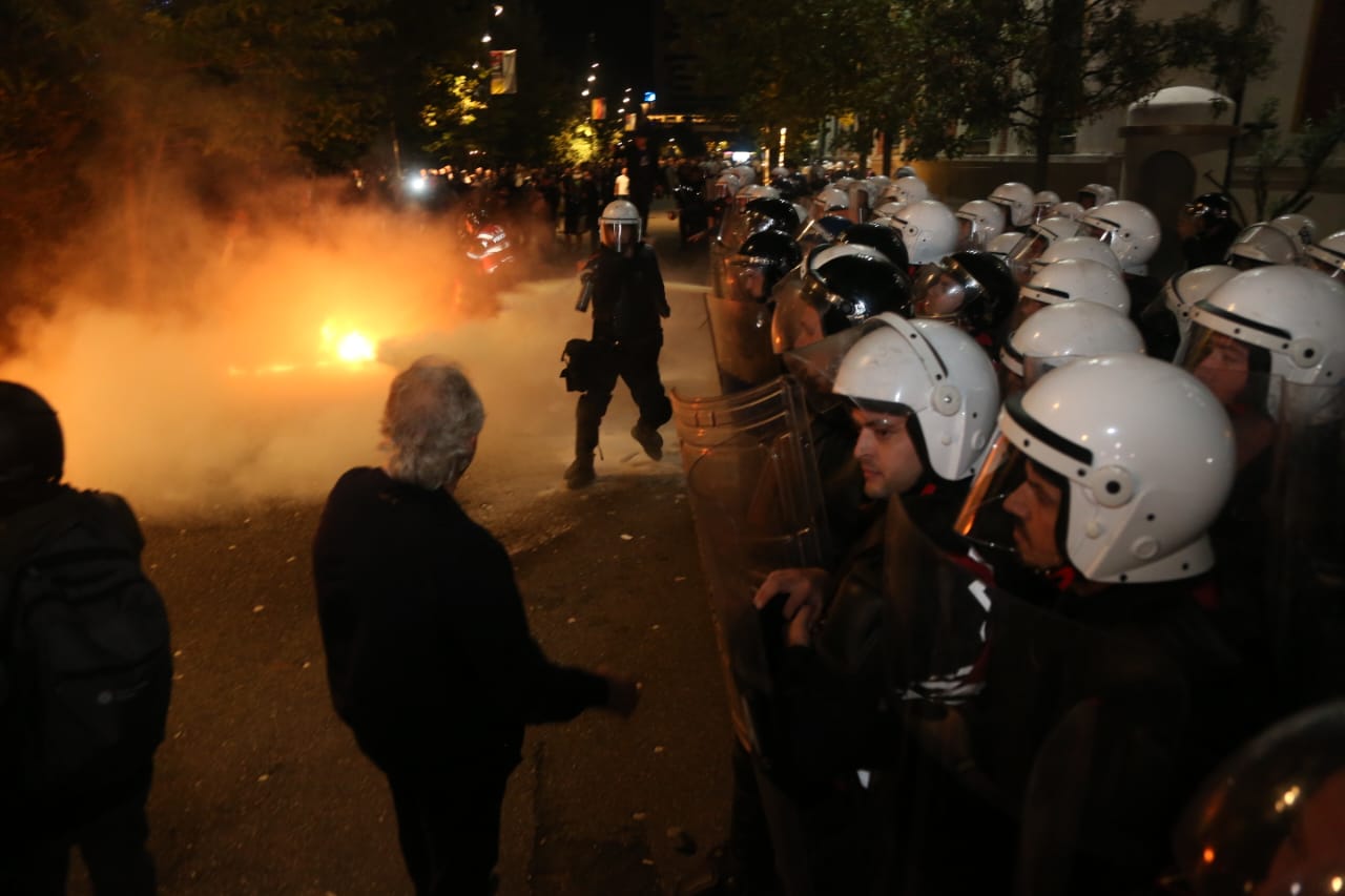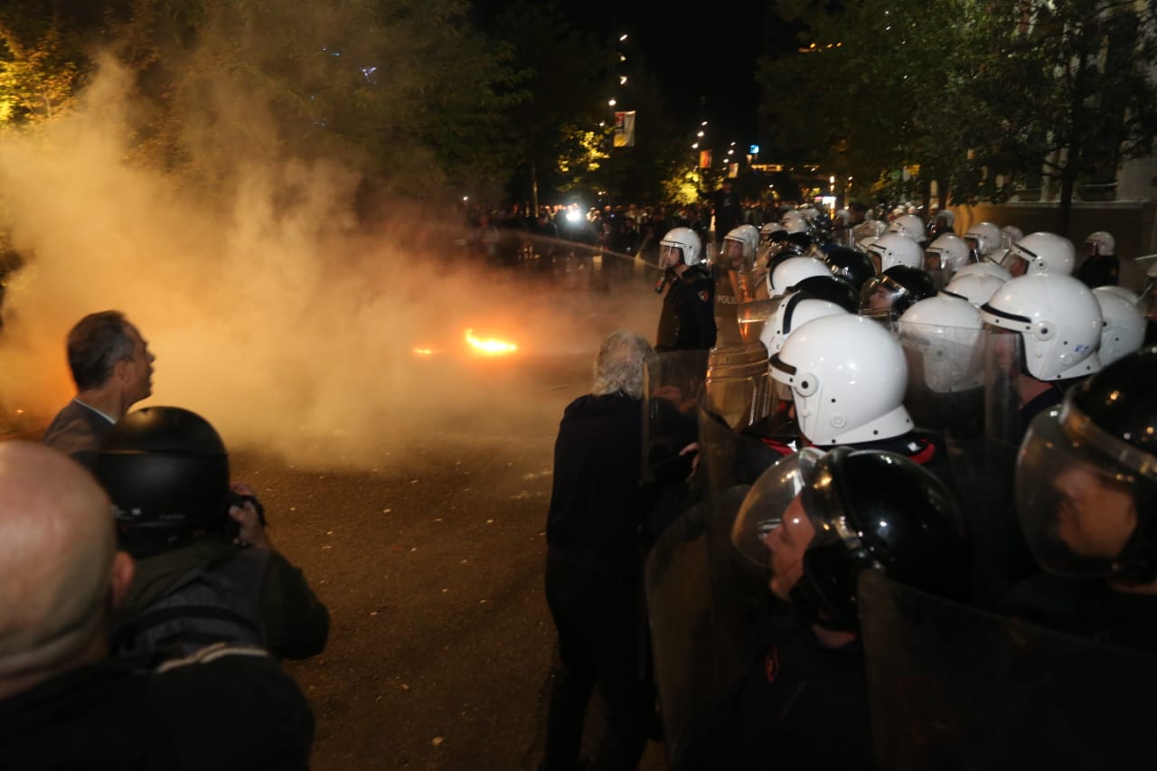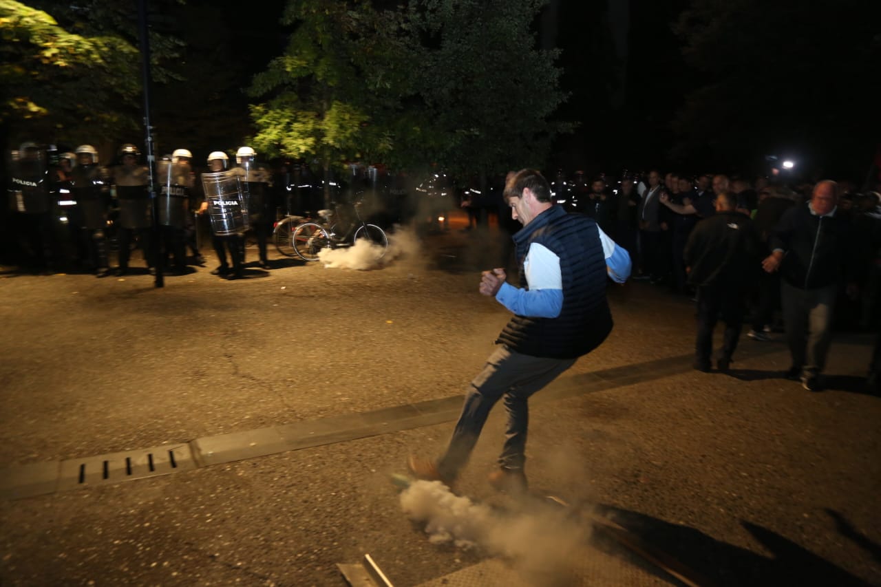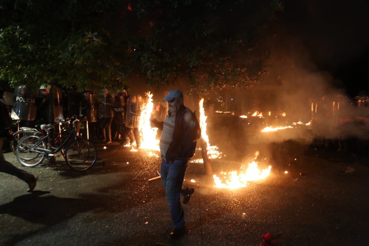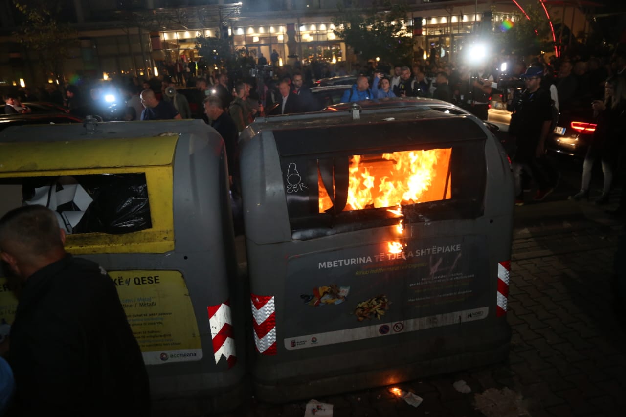 Një protestues dhe një efektiv policie morën lëndime të lehta nga molotovi i hedhur para Bashkisë Tiranë/balkanweb