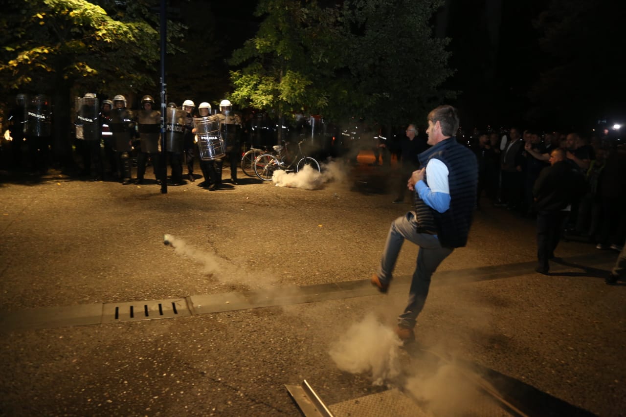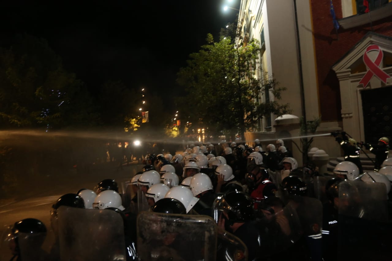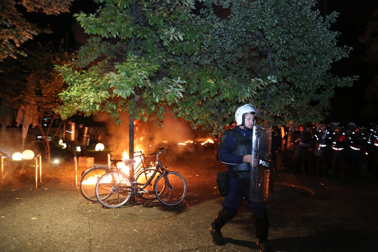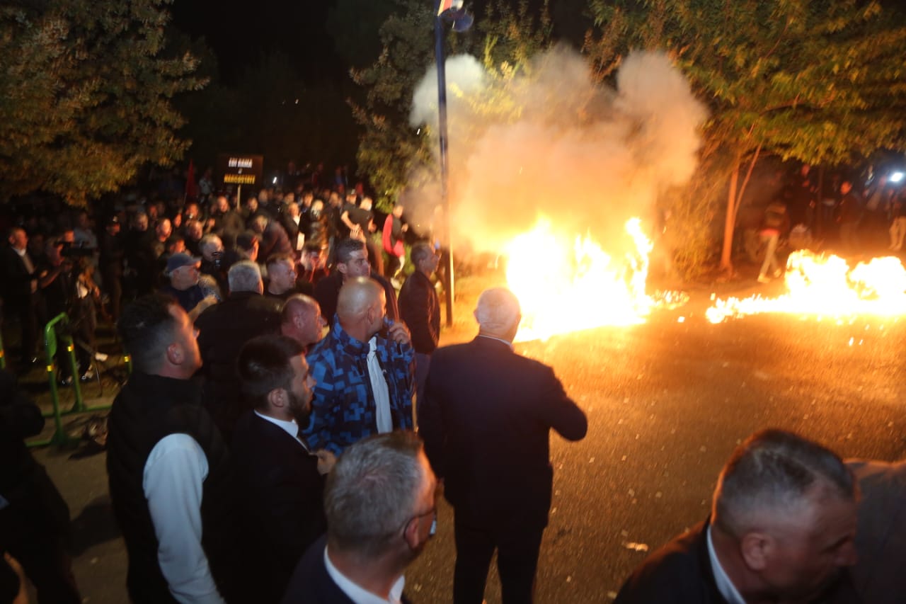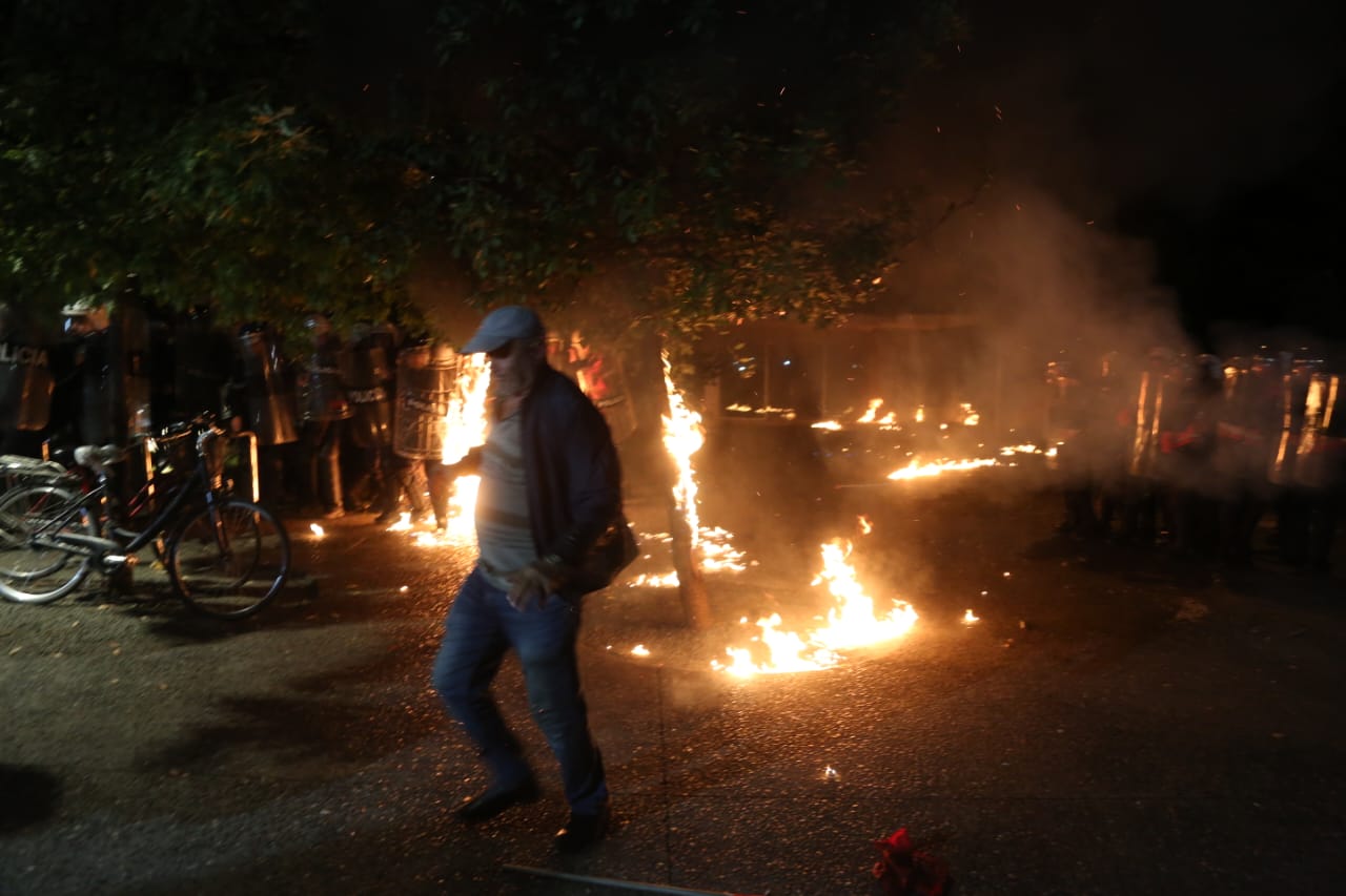 Një protestues dhe një efektiv policie morën lëndime të lehta nga molotovi i hedhur para Bashkisë Tiranë/balkanweb