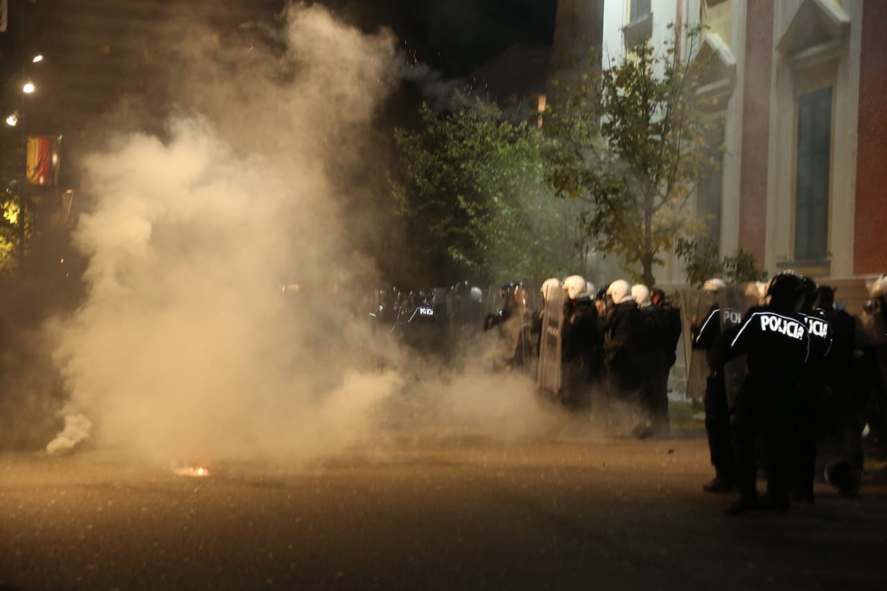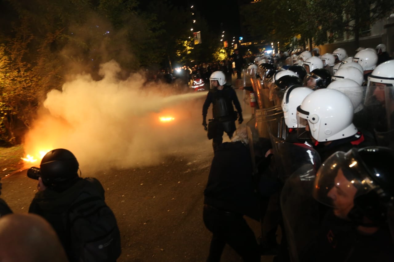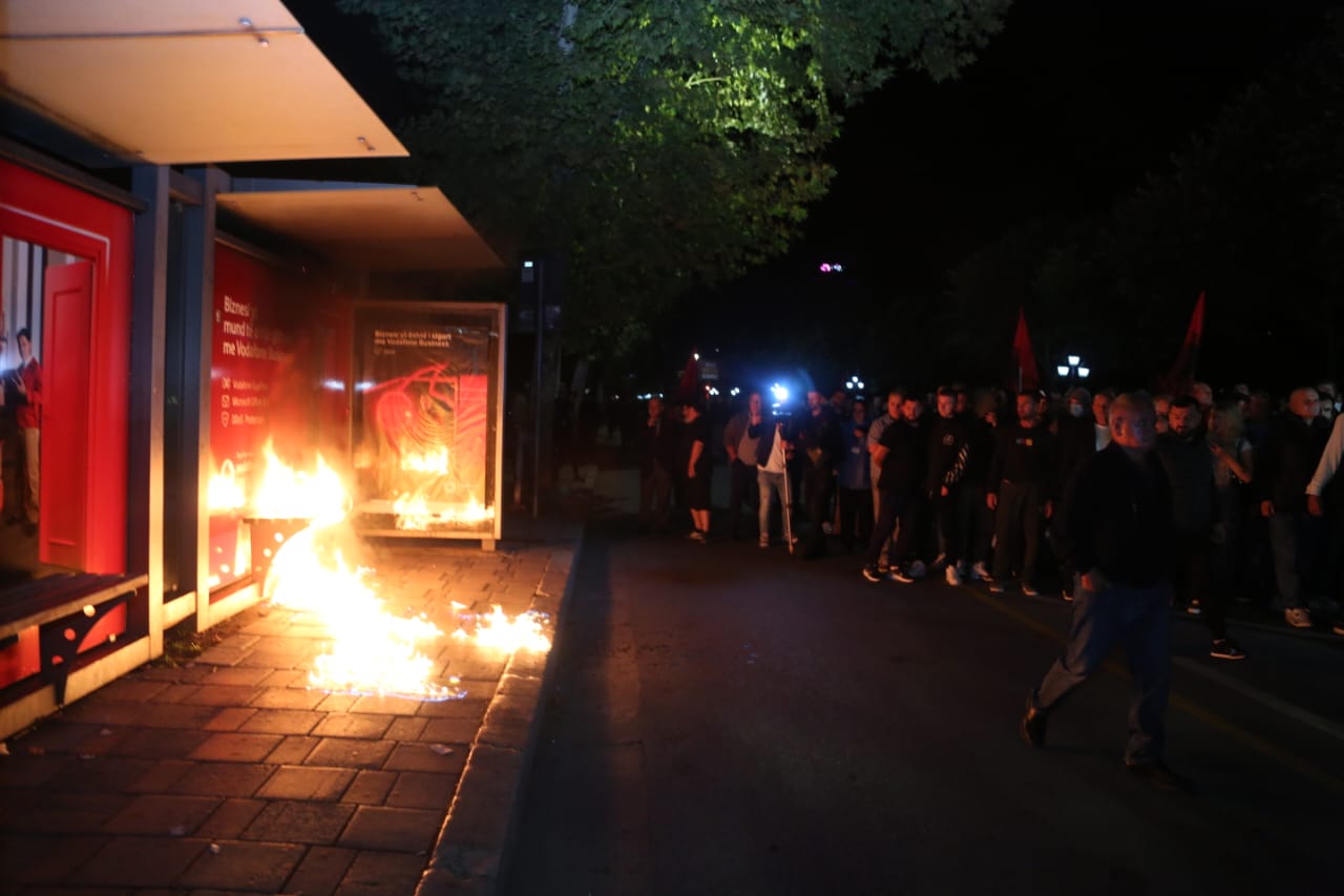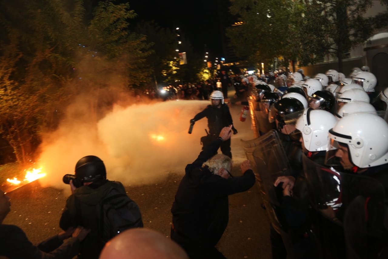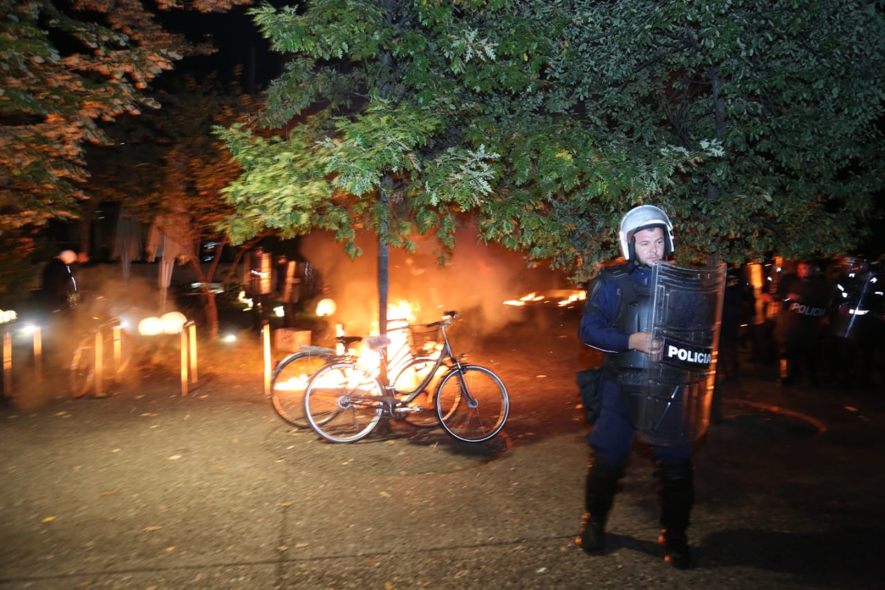 Një protestues dhe një efektiv policie morën lëndime të lehta nga molotovi i hedhur para Bashkisë Tiranë/balkanweb