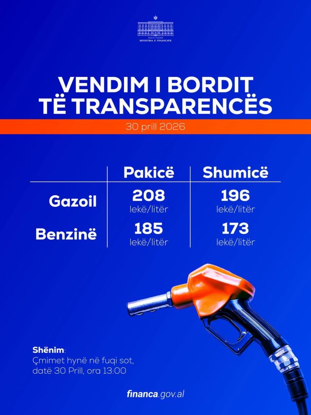 Bordi i Transparencës vendosi këtë të enjte çmime të reja për karburantet, duke e çuar gazoilin në 208 lekë/litër dhe benzinën në 185 lekë/litër, me hyrje në fuqi të menjëhershme nga ora 13:00.