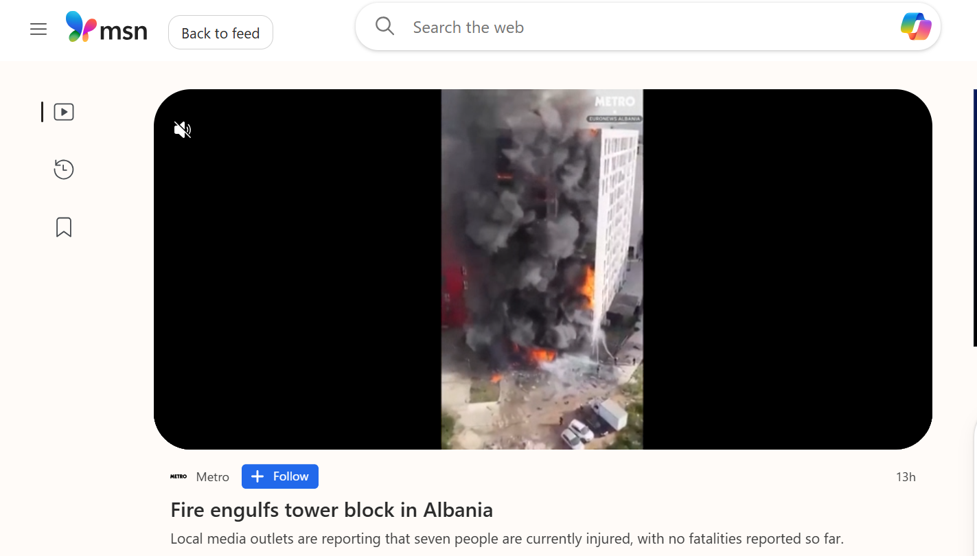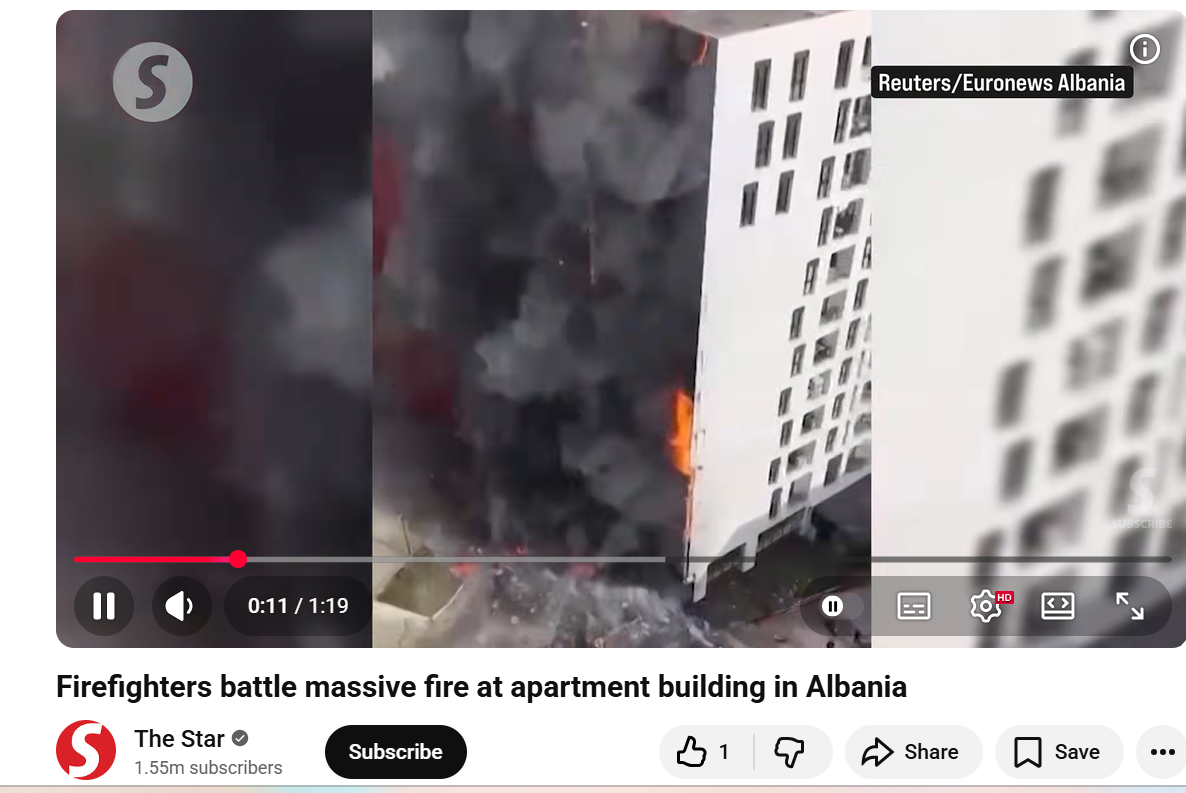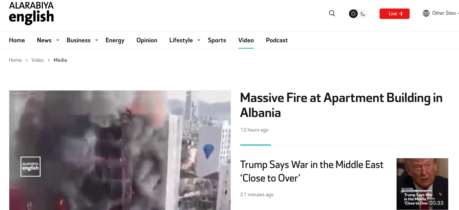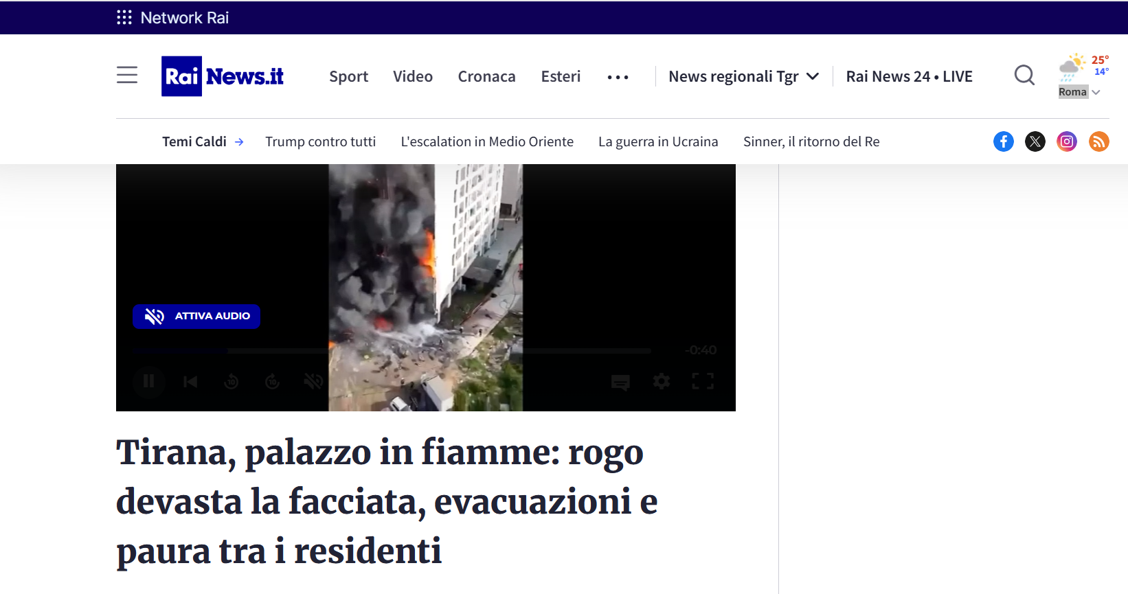Zjarri i fuqishëm që përfshiu një pallat në Tiranë është pasqyruar gjerësisht nga mediat ndërkombëtare, të cilat e cilësojnë ngjarjen si një incident të rëndë urban me pasoja të konsiderueshme.
