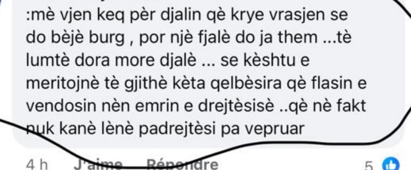 Kjo është fytyra e dhimbshme e një shoqërie që e ka humbur besimin tek drejtësia dhe e ka zëvendësuar atë me emocionin e momentit, me hakmarrjen si “shpagim” Kur sistemi dështon të japë drejtësi, njerëzit fillojnë ta marrin atë në dorë, dhe kur edhe kjo kthehet në spektakël publik, kemi hyrë në zonën gri ku krimi fillon të ngatërrohet me moralin.