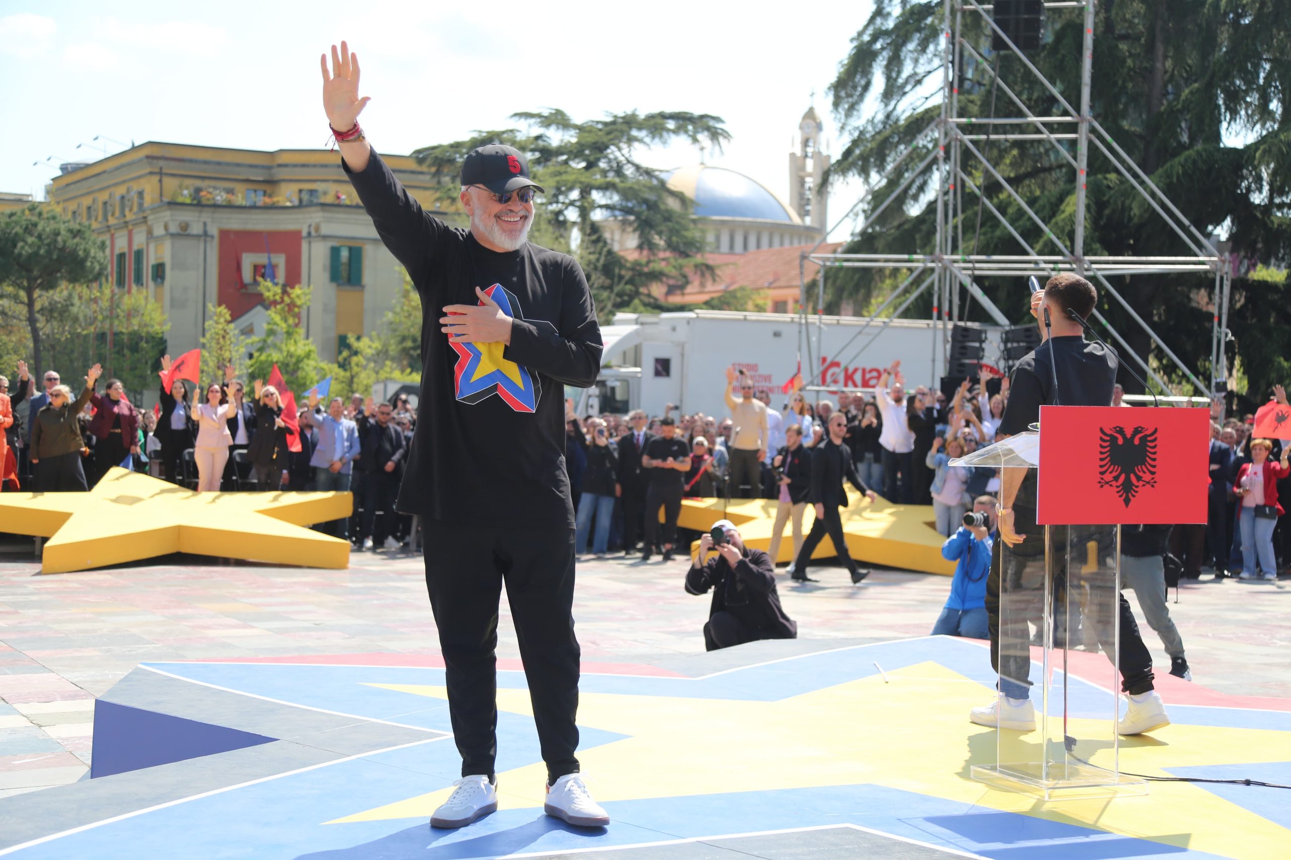 Rama: Duke qenë se të gjitha qarqet sollën një surprizë, unë kam sjellë surprizë një çun problematik të cilit i kërkova të vijë këtu para jush dhe nga ky shesh të flasë ashtu siç ai ditë të flasë përmes fjalësh dhe tingujsh dhe e ftoj që të vijë këtu. Para ca ditësh isha në studion e tij dhe dëgjova një këngë të re, duke qenë se Noizy është i joni, i imi dhe i juaji, i thash hajde se unë do të ngelem vetëm me zërin tim dhe ja ku është këtu.