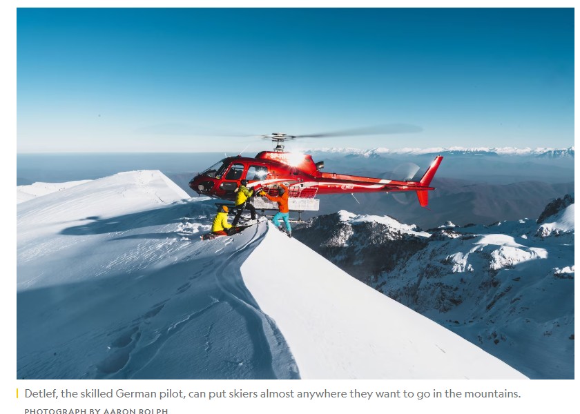 Të zbresësh nga një helikopter 2,200 metra mbi një shpat të mbuluar me borë është një shpërthim zhurme e lëvizjesh të çrregullta. Piloti gjerman Detlef Gensel, me përvojë të gjatë, shpesh nuk mund të ulet plotësisht, por vetëm prek borën me majat e skive të helikopterit, duke lënë motorin ndezur. Skiatorët duhet të lëvizin shpejt, ndërsa era e fortë e rotorëve përplas flokët e borës mbi fytyrat e tyre. Me një shenjë “thumbs up”, helikopteri largohet, duke i lënë të vetëm në majë të një pike të paemërtuar.