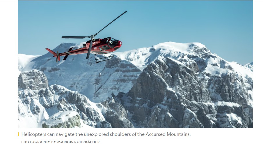 “Heliski Albania” ofron paketa javore për grupe prej katër personash, me çmim nga 9,400 € për person. Ato përfshijnë katër orë fluturim, gjashtë ditë ski me guida të certifikuara, akomodim me ushqim të plotë dhe pajisje sigurie kundër ortekëve./ National Geographic