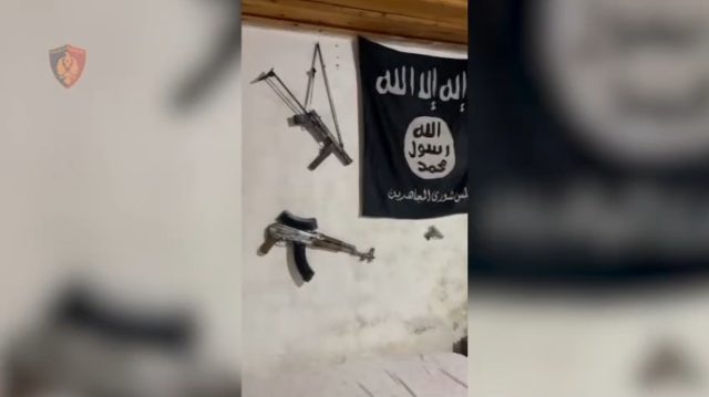 Flamur i Organizatës Terroriste ISIS, i vendosur në mur