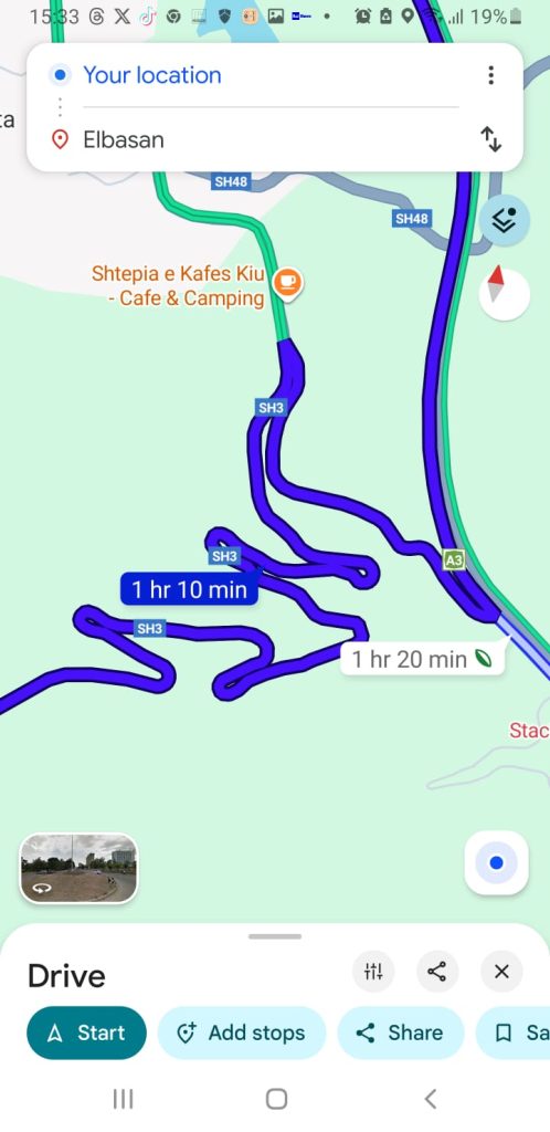 Google maps sugjeron një devijim që të nxjerr në rrugën e vjetër të Kërrabës duke shmangur tunelin dhe zonën e Shijonit ku dhe krijohet ngërrçi për shkak se në dalje të autostradës nga tri korsi rruga reduktohet në një.