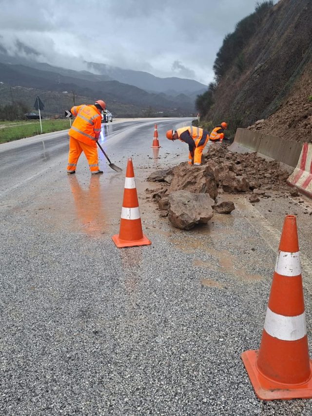 Sipas Autoritetit Rrugor Shqiptar, problematika është shfaqur në aksin Lukovë–Shën Vasil, ku janë konstatuar materiale në trup të rrugës, por lëvizja e mjeteve vijon normalisht.