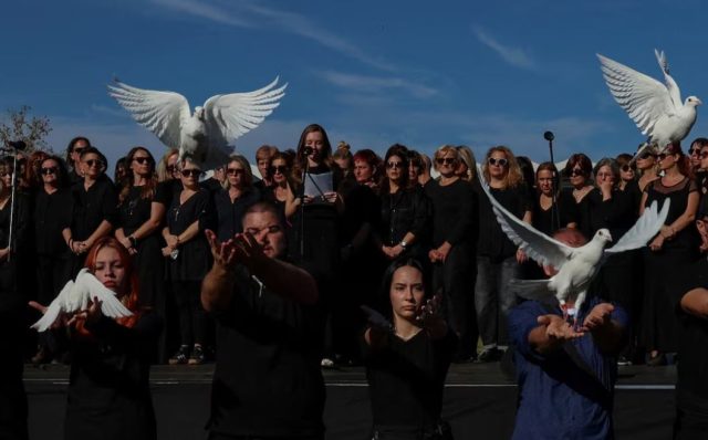 Protestuesit – shumë prej të cilëve të rinj – mbajtën 16 minuta heshtje – një për çdo viktimë – nga ora 11:52 e mëngjesit (10:52 GMT), kur çatia u shemb pas punimeve të rinovimit më 1 nëntor 2024.