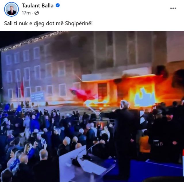Kryetari i Grupit Parlamentar të Partisë Socialiste, Taulant Balla i dërgon një mesazh kryetarit të PD, Sali Berisha pas molotovëve të hedhur në drejtim të kryeministrisë.