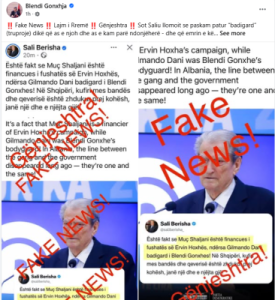 “Fake News! Lajm i Rremë! Gënjeshtra !Sot Saliu llomoit se paskam patur “badigard” (truproje) dikë që as e njoh dhe as e kam parë ndonjëherë – dhe që emrin e këtij subjekti e mësoj si shumica e njerëzve nga kronika!