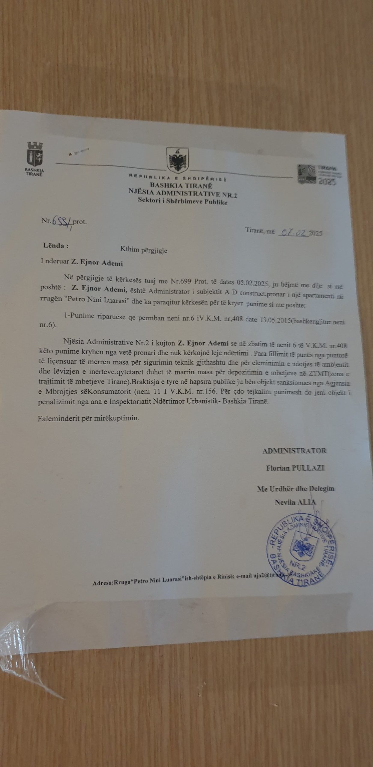 Pavarësisht ankesave të shumta dhe thirrjeve të përsëritura, as Policia e Shtetit dhe as Policia Bashkiake nuk kanë ndërhyrë për të ndaluar punimet. Më shqetësuese akoma, dokumentet e varura në ambientet e punimeve tregojnë se leja e ndërtimit nuk është e përshtatshme për ndërhyrje kaq rrënjësore, duke ngritur dyshime të forta për shkelje të rënda ligjore.