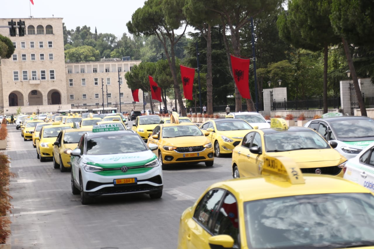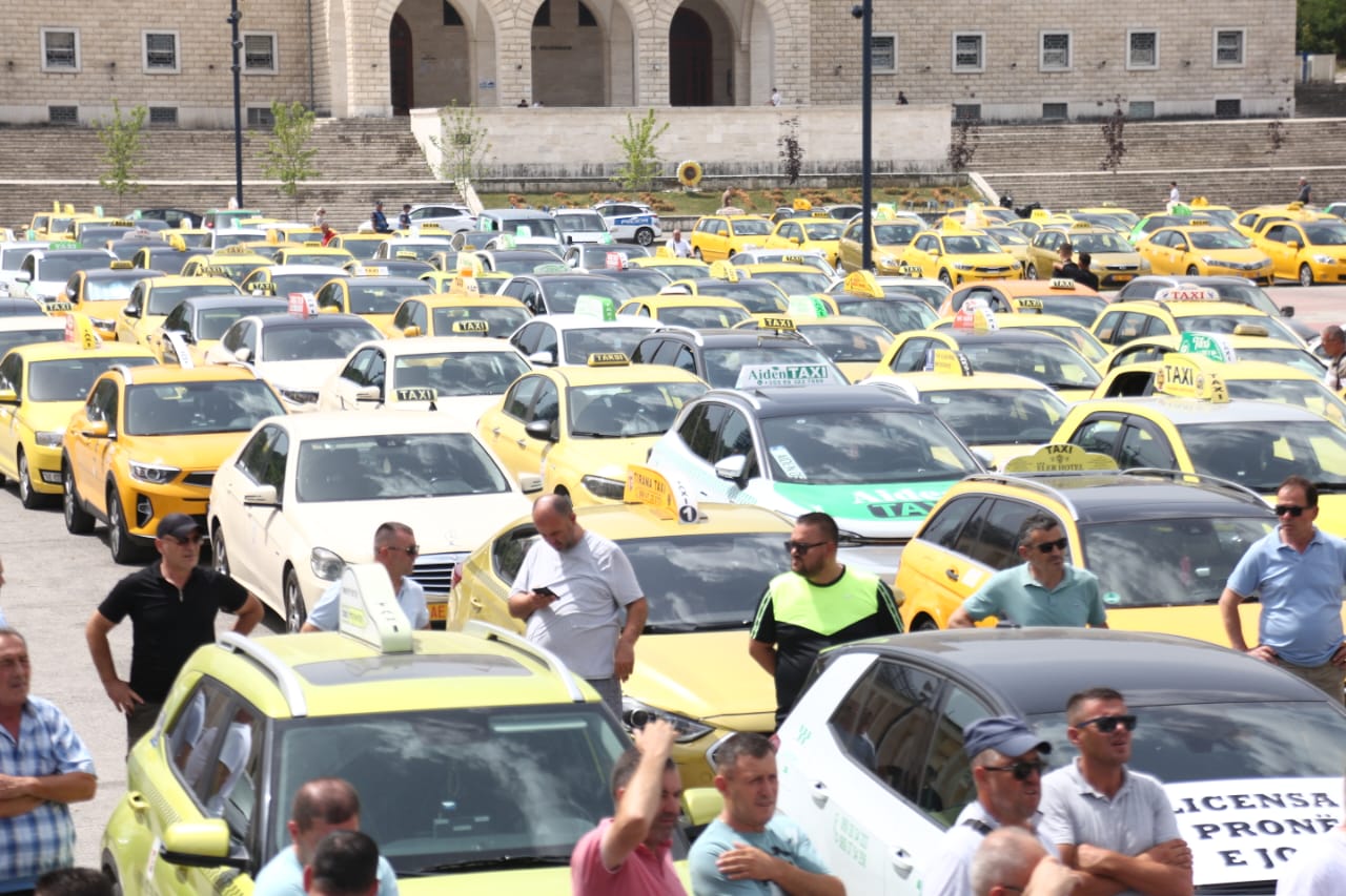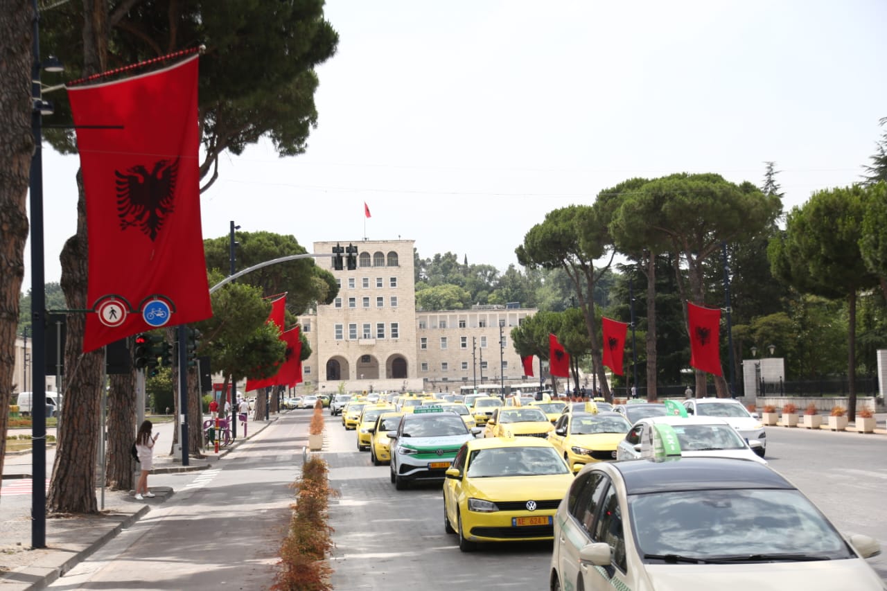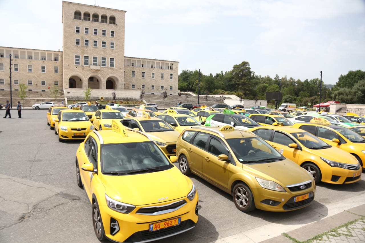 Sindikata e Punonjësve të transportit rrugor dhe taksive protestuan sot në Tiranë. Ata kërkojnë kushte më të mira pune për të gjithë taksistët gjë që sipas tyre sigurohet duke respektuar disa rregulla.