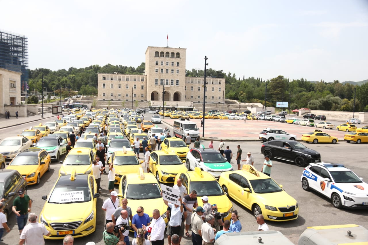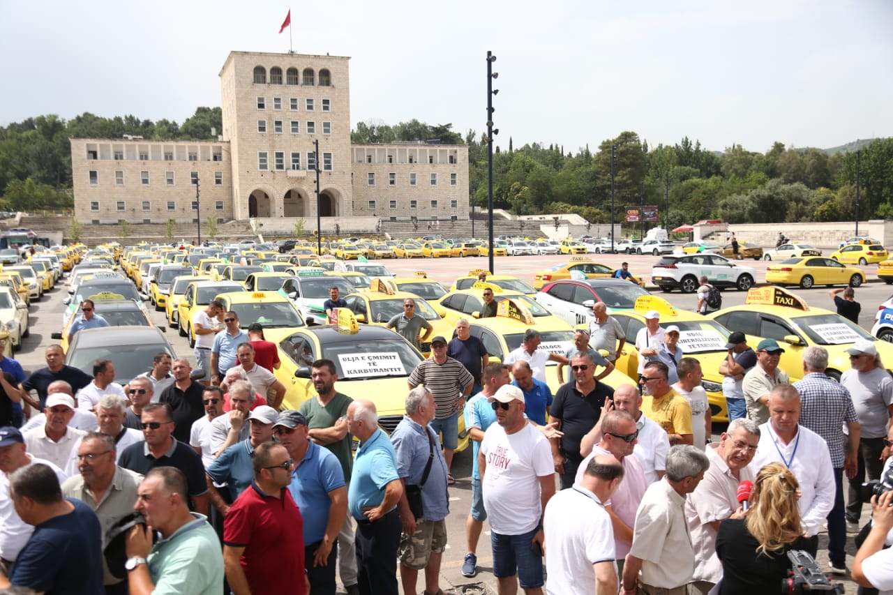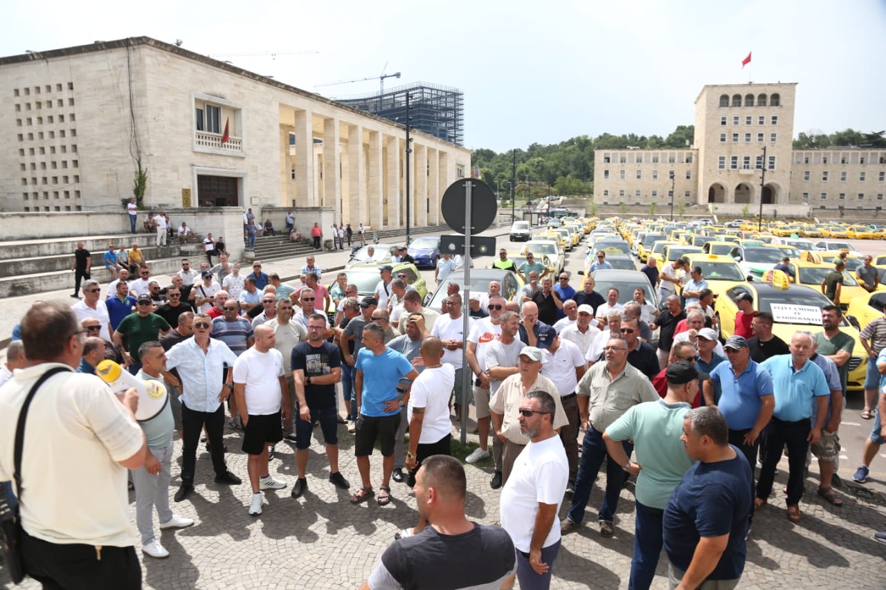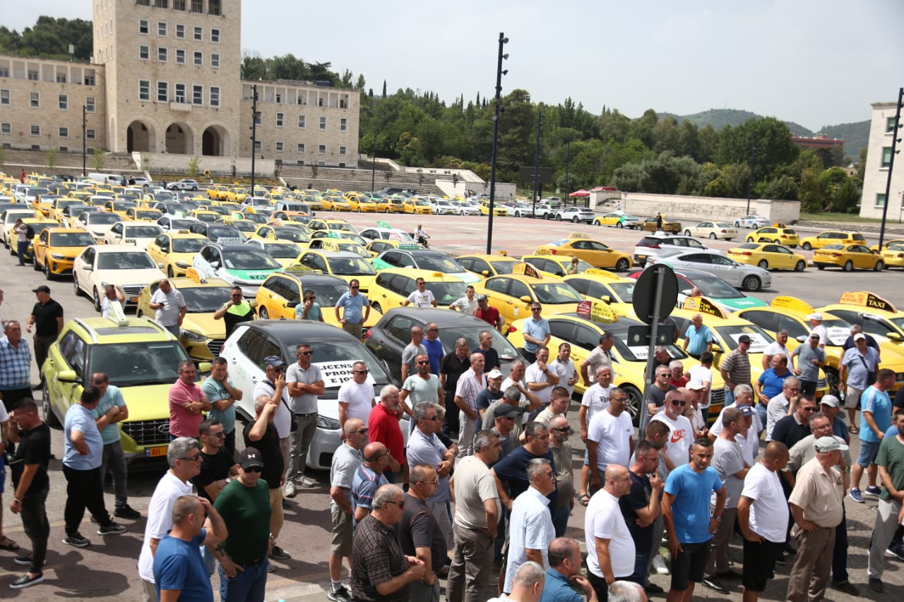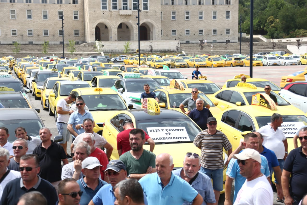 Sindikata e Punonjësve të transportit rrugor dhe taksive protestuan sot në Tiranë. Ata kërkojnë kushte më të mira pune për të gjithë taksistët gjë që sipas tyre sigurohet duke respektuar disa rregulla.
