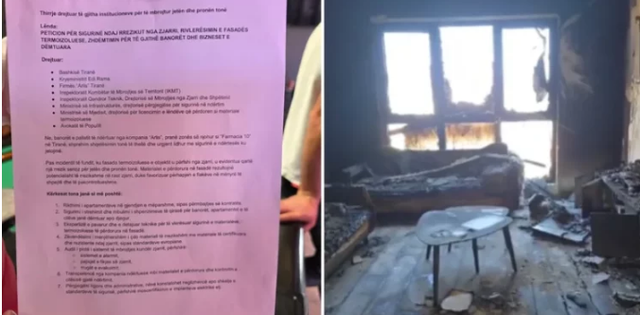 Banorët kërkojnë gjithashtu një ekspertizë të pavarur teknike për të vlerësuar sigurinë e materialeve termoizoluese në fasadë dhe zëvendësimin e menjëhershëm të çdo materiali të rrezikshëm me materiale të certifikuara sipas standardeve europiane.